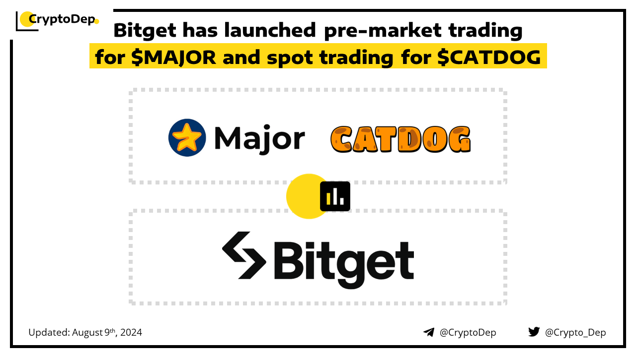 Pre-market trading for MAJOR POINTS $MAJOR and spot trading for CatDog $CATDOG are now live on Bitget! Users can now trade $MAJOR in advance before it becomes available for spot trading. Deposits are now open and withdrawals will open on August 10th, at 12:00 UTC. CatDog is a Solana meme coin based on the viral CatDog cartoon. Major is the first rating game in Telegram.
