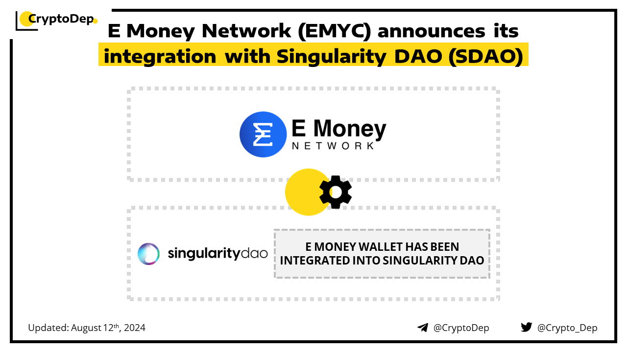E Money Network has integrated its native wallet into the Singularity DAO platform. This innovation will allow Singularity DAO's users to manage and transact their fiat, e-money tokens, cryptocurrencies, and other digital assets using one wallet. E Money Network is a pioneering modular RWA Chain with compliance blocks.