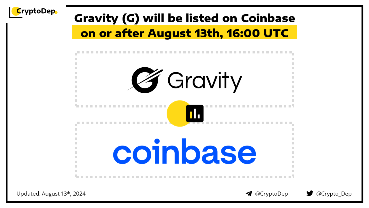 ββGravity (G) will be listed on Coinbase on or after August 13th, 16:00 UTC