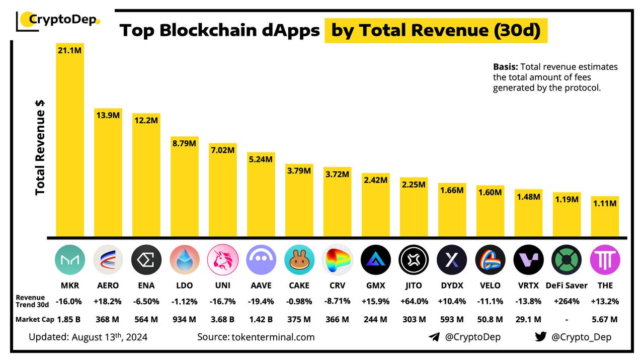 ββTop Blockchain dApps by Total Revenue (30d)