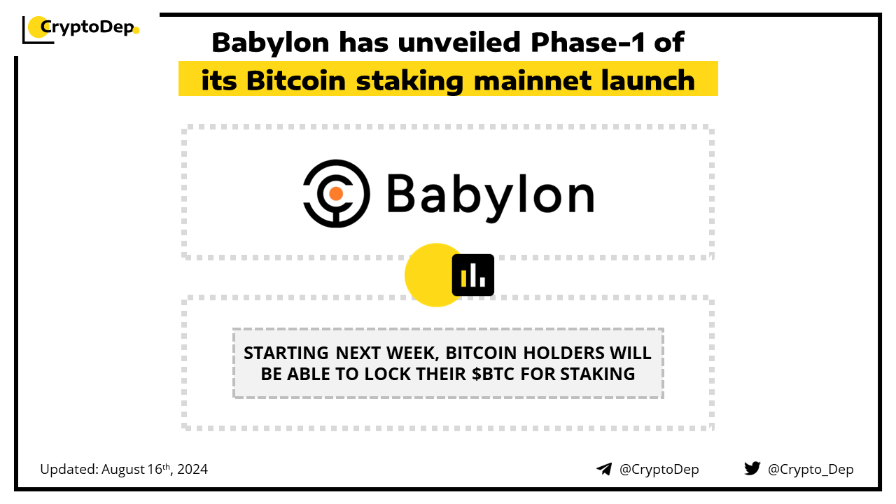 Babylon has unveiled Phase-1 of its Bitcoin staking mainnet launch