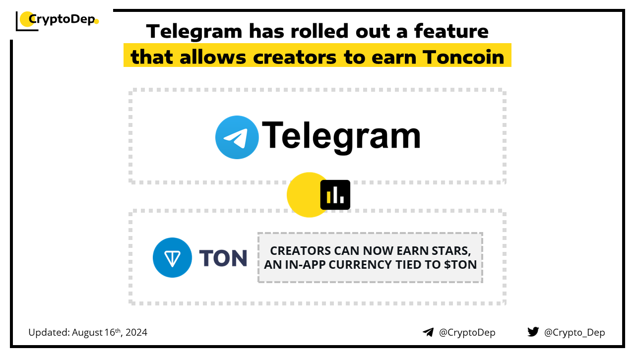 Telegram has rolled out a feature that allows creators to earn Toncoin