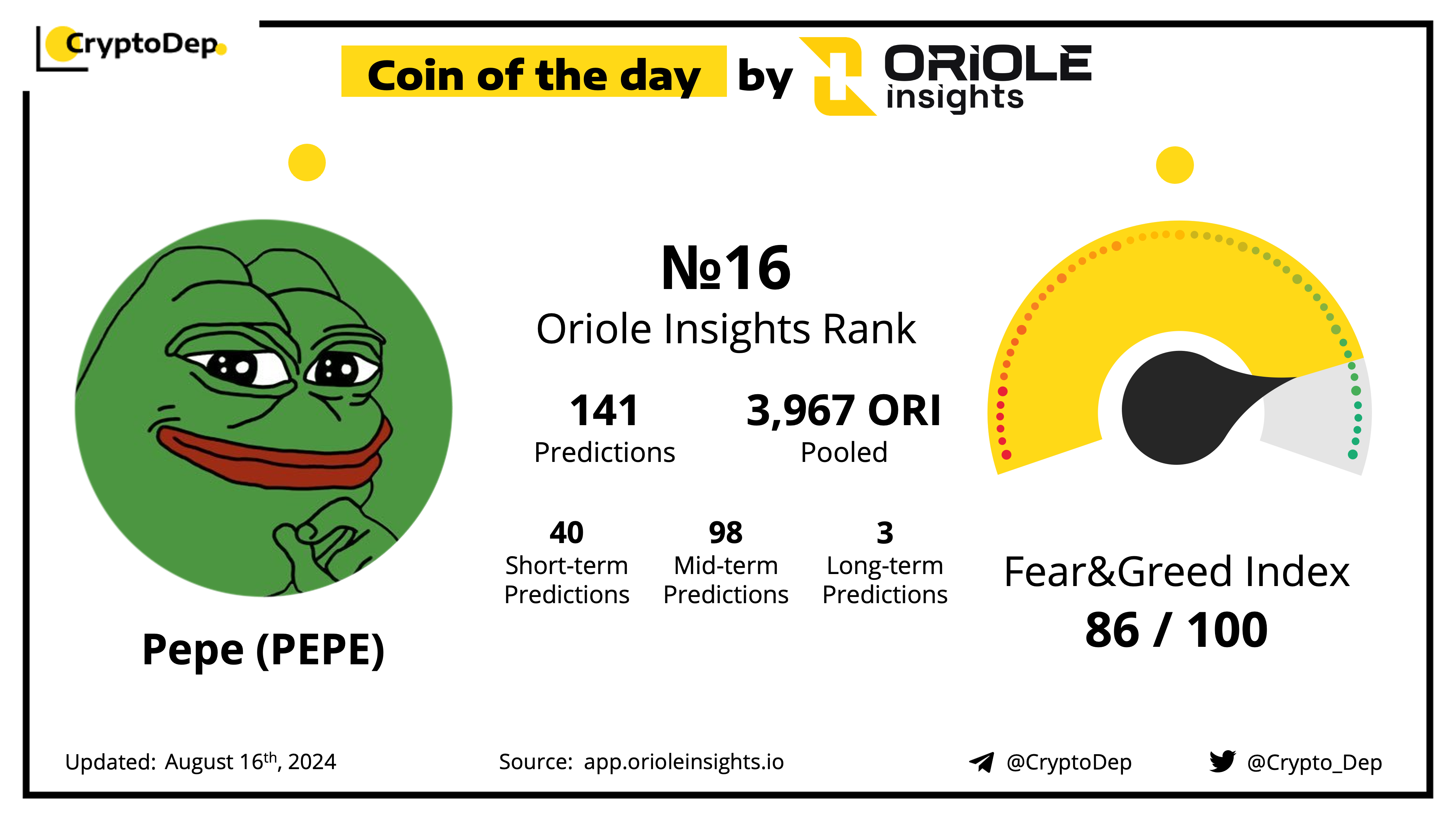 Predict PEPE price movements on Oriole Insights