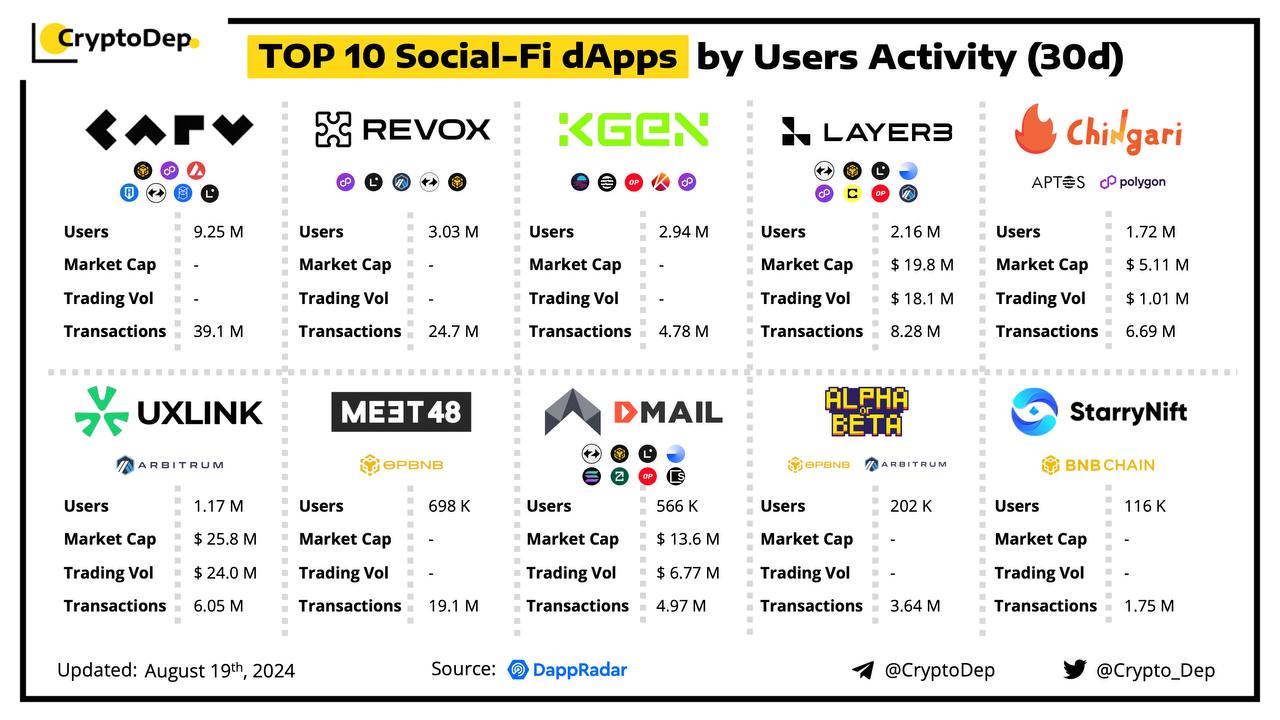 TOP 10 Social-Fi dApps by Users Activity (30d)