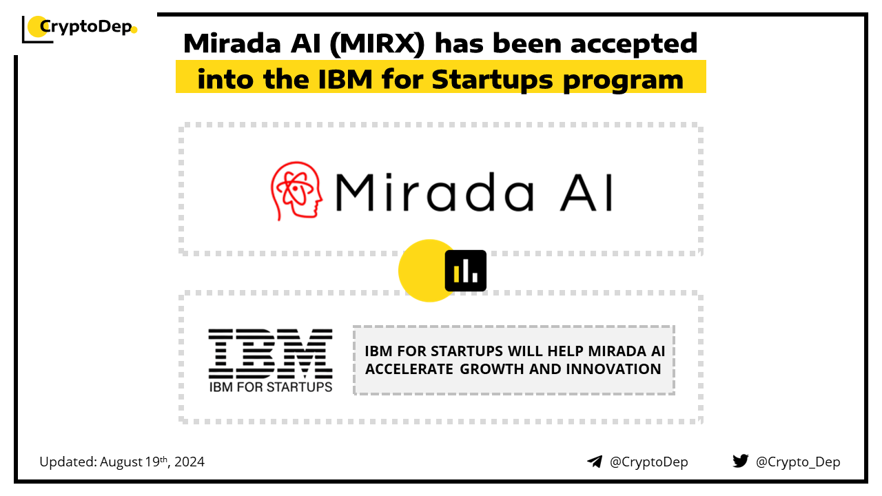 Mirada AI joins IBM for Startups, a hub that helps projects to innovate and enhance their solution with IBM AI. The program will help Mirada AI accelerate growth and innovation by providing technical support and guidance, advisory and consulting, free cloud computing credits, as well as, networking opportunities. Mirada AI is a decentralized AI tool, powered by AI via $MIRX, that offers image generation, face-swap, animation, LLM chat, image upscaling, and more.