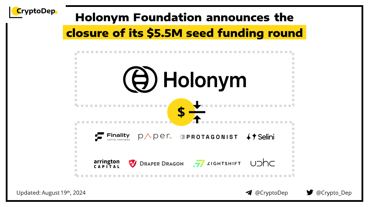 Holonym Foundation, an organization building the next generation of digital identity security for the decentralized web, raises $5.5M in a seed investment. The round was led by Finality Capital & Paper Ventures and featured additional participation from Draper Dragon, Arrington Capital, Lightshift, Zero Knowledge Ventures, Zero DAO, Protagonist, Selini Capital, WAGMI Ventures, UDHC and others. Holonym develops Human Keys, encompassing three protocols built by the Holonym Foundation, all having security and robust data privacy systems as core principles.