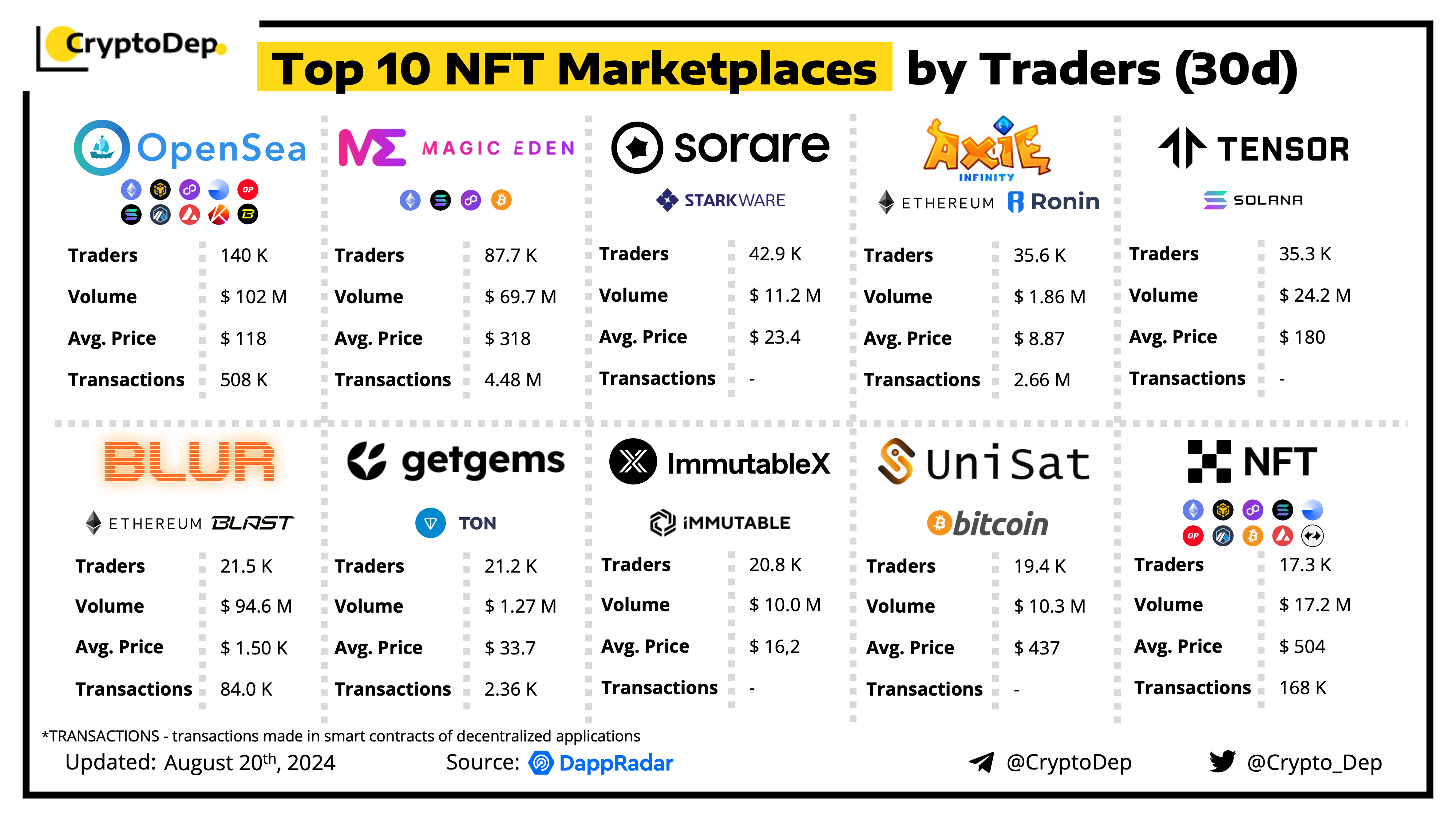 Top 10 NFT Marketplaces by Traders (30d)