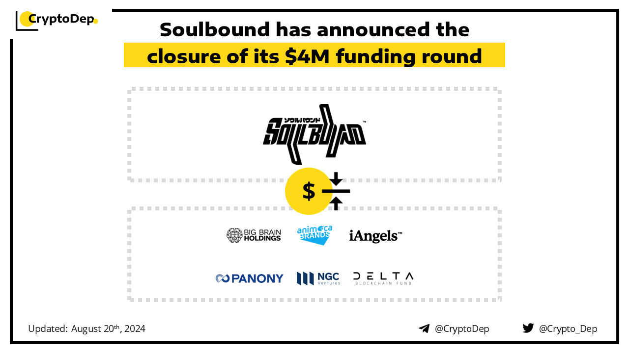 Souldbound, a Web3 player profile, and social platform, raises $4M in funding for the Web3 social gaming ecosystem. Among round participants are iAngels, Animoca Brands, Big Brain Holdings, NGC Ventures, Panony, Delta Blockchain Fund and more. The investment will allow Soulbound to establish gaming partnerships, add social interactions, and expand streamer bounties and social questing.