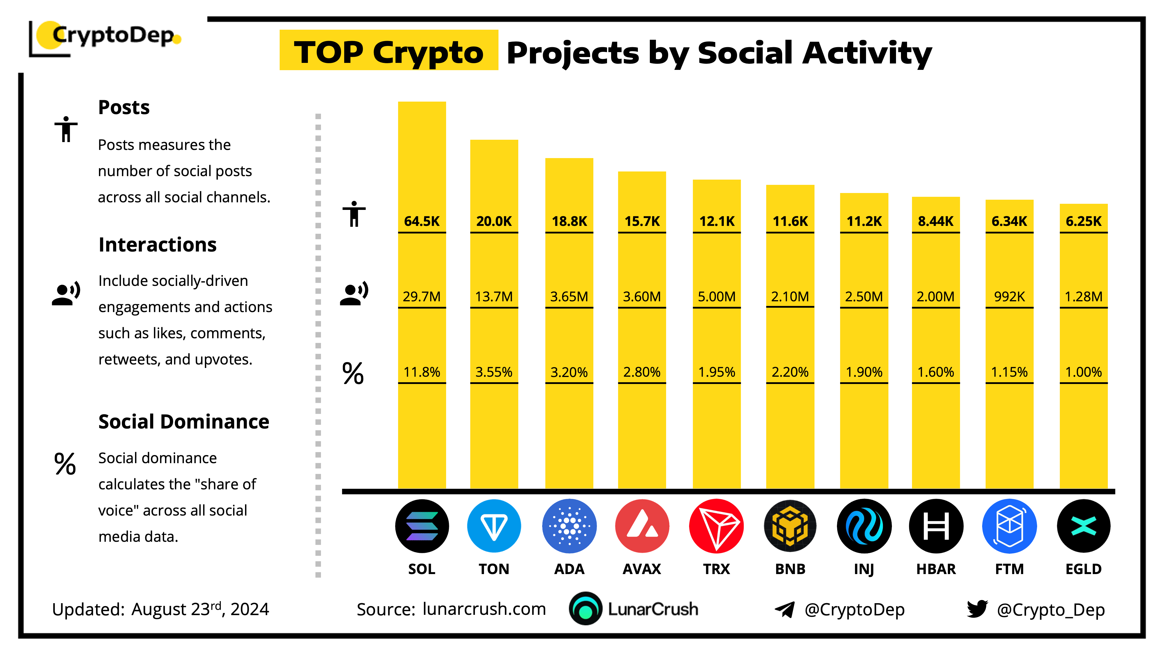 Interactions include socially-driven engagements and actions such as likes, comments, retweets, and upvotes.