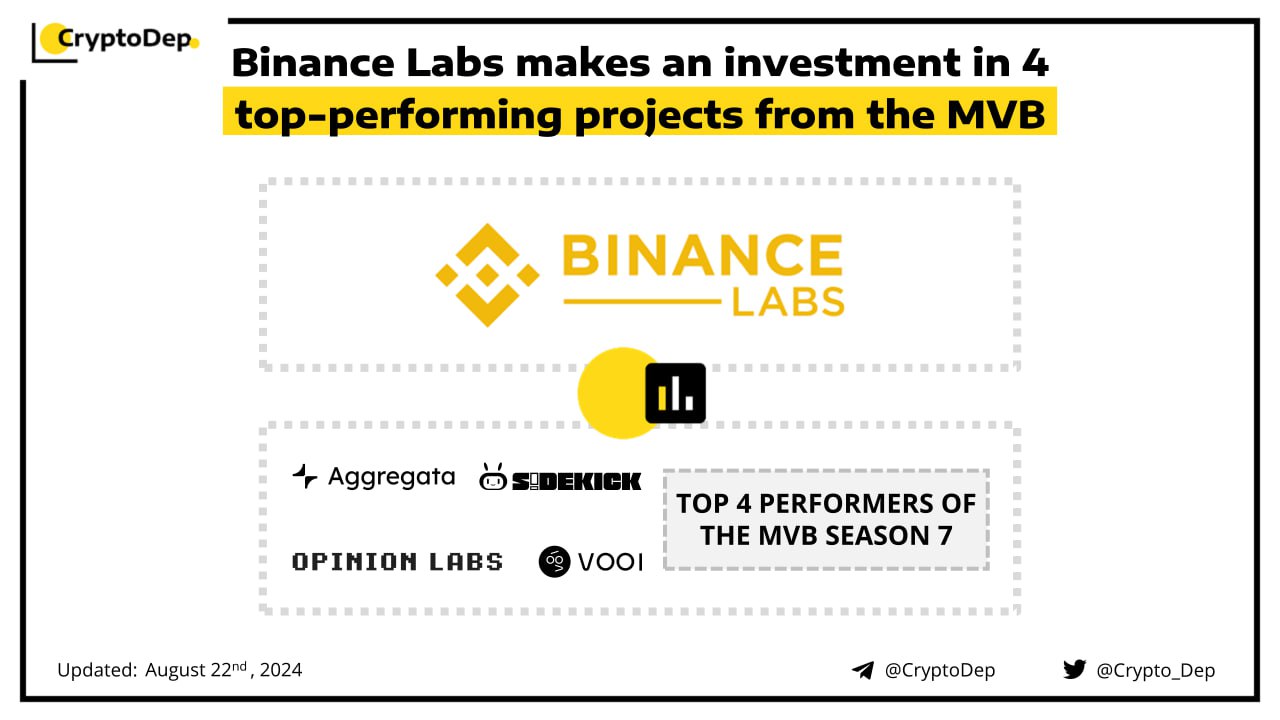 Binance Labs has invested in 4 top-performing projects from the recent season of BNB Chainβs Most Valuable Builder program. Among the selected projects are Aggregata, Opinion Labs, Sidekick Labs, and Vooi. Earlier in March, Binance Labs introduced 13 projects selected to join the 7th season of MVB. Participants of the MVB accelerator program received personalized mentorship from experts at BNB Chain, CMC Labs, and Binance Labs, as well as access to the BNB Chain Launch-as-a-Service package.