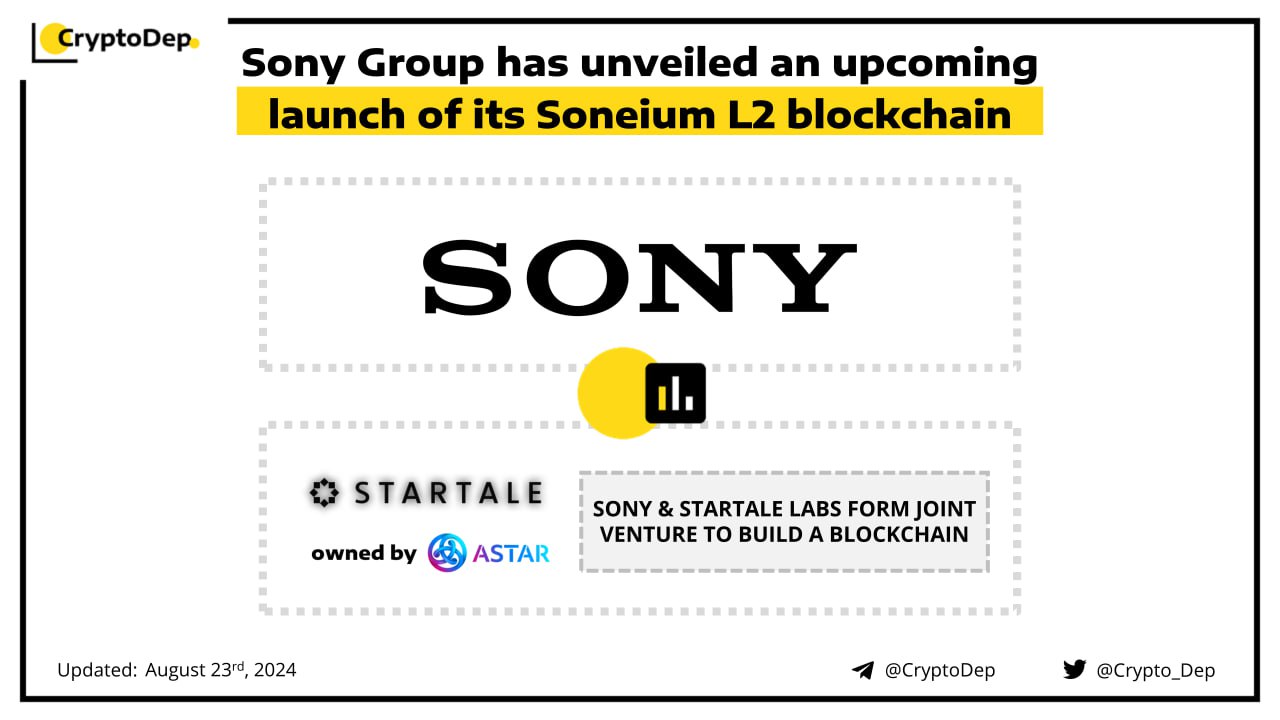 Sony Groupβs joint blockchain venture with Startale introduces Soneium, its first Ethereum Layer-2 blockchain. The network will be focused on scalability and user-friendliness with an aim for mainstream adoption. The firm is currently preparing the blockchainβs testnet launch which will feature Astar Network's zkEVM integration. Back in June 2023, Sony Network Communications made a $3.5M investment in Startale Labs.