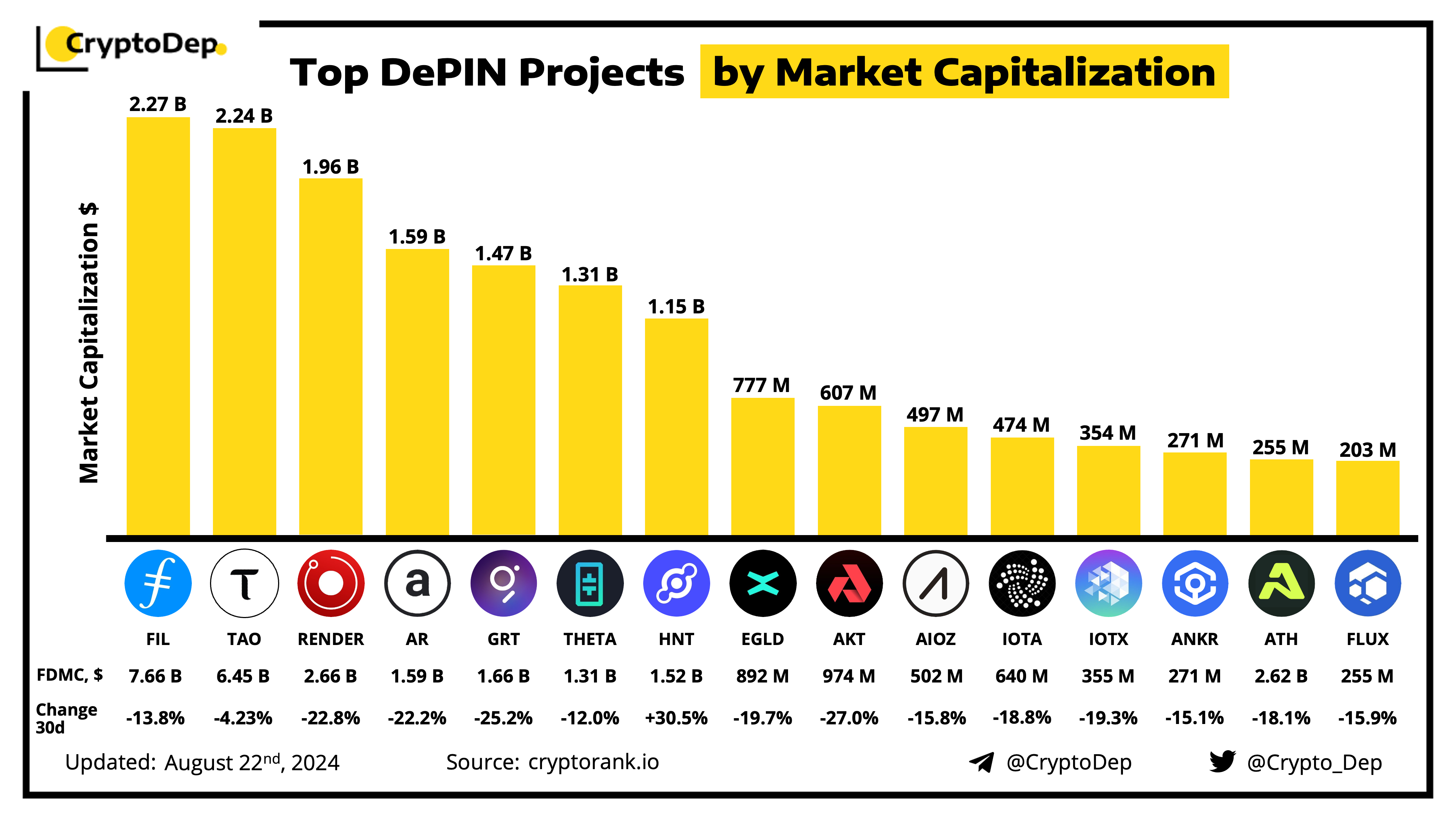 DePIN projects use crypto-incentives to coordinate the buildout & operation of critical infrastructure. Let's analyze current sector leaders by comparing their market capitalizations.