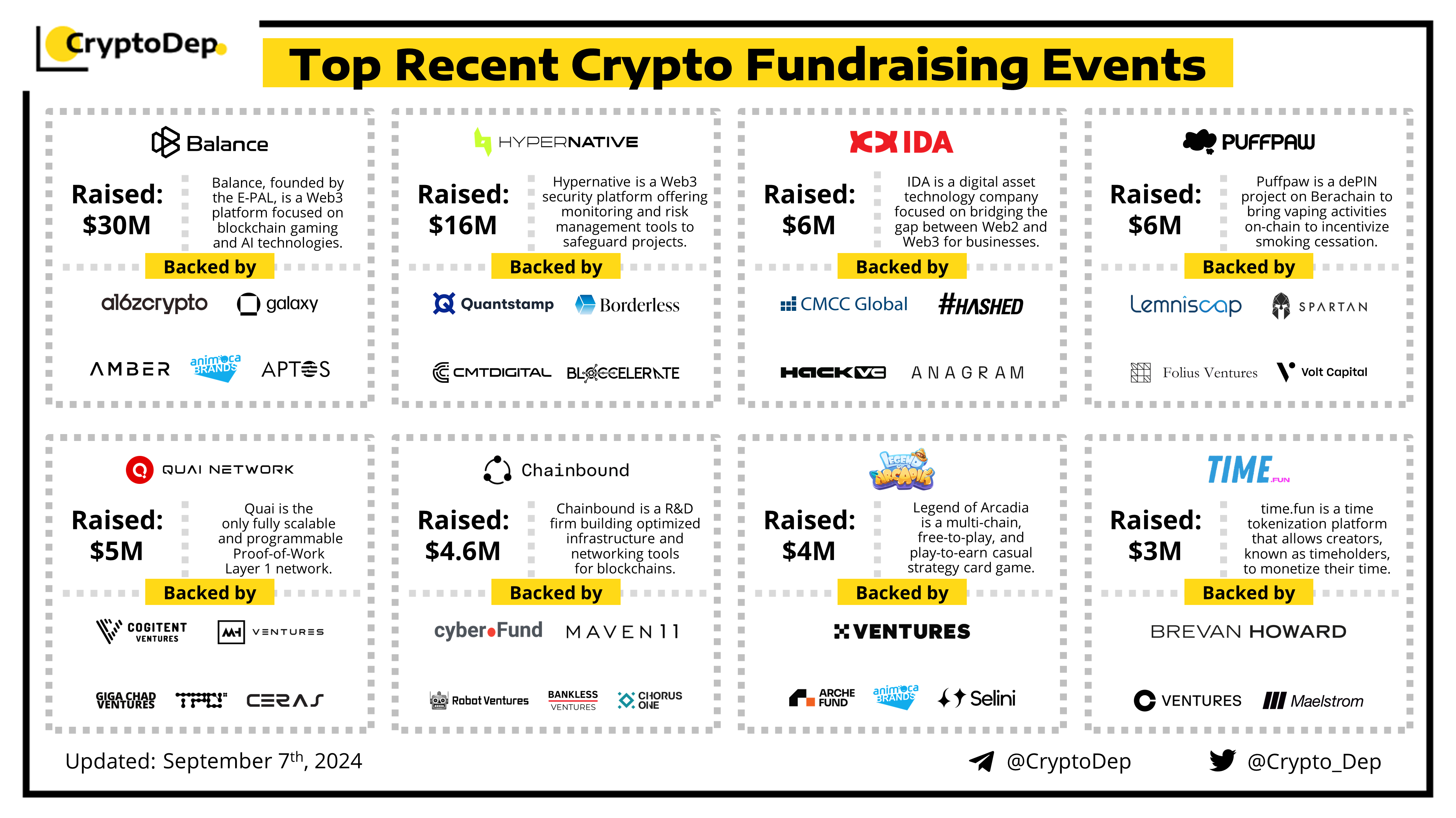 Presenting a list of some recent crypto fundraising events, backed by well-known investors such as a16z crypto, Hashed, Hack VC, Animoca Brands, Spartan Group, Coinbase Ventures, Maelstrom, OKX Ventures, MH Ventures, Borderless Capital, Robot Ventures, Maven 11, Arche Fund, Aptos Labs, and others. Let's take a look!