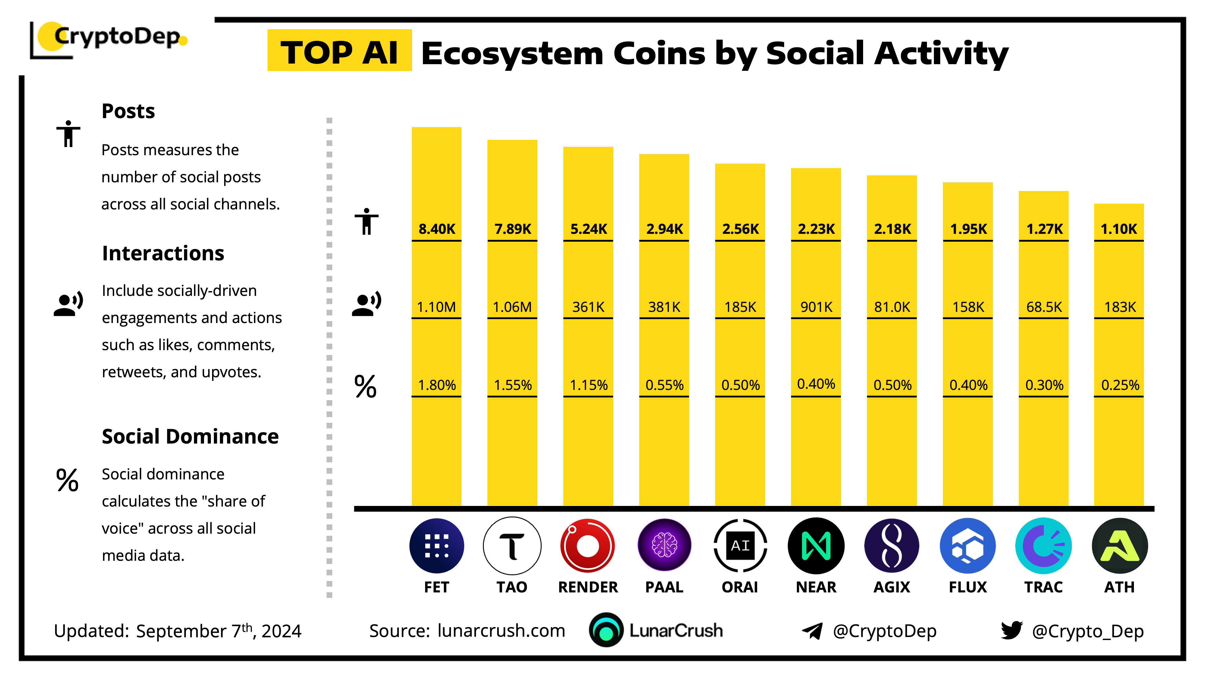 Interactions include socially-driven engagements and actions such as likes, comments, retweets, and upvotes.