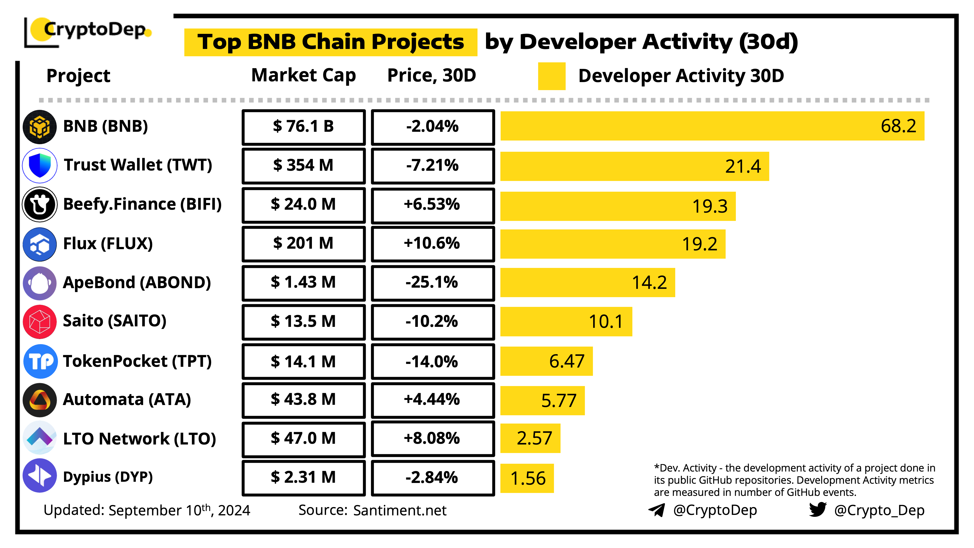 ββTop BNB Chain Projects by Developer Activity (30d)