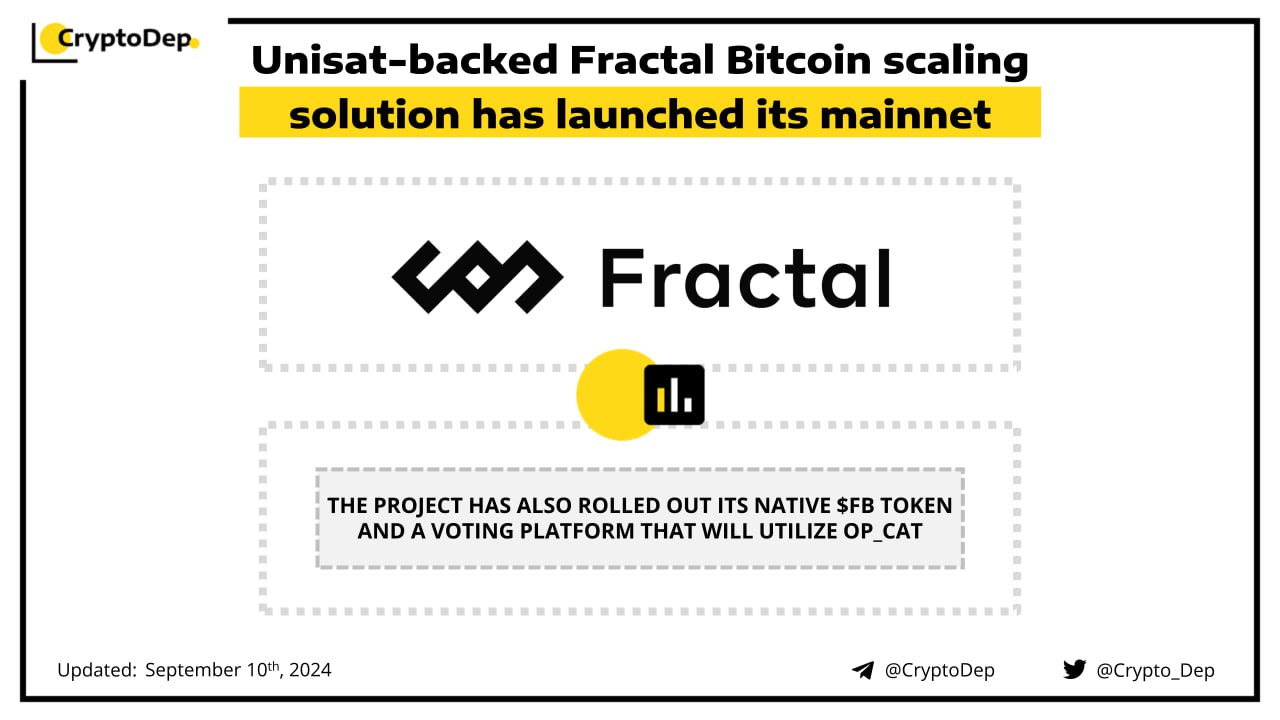 Fractal Bitcoin, a Bitcoin native scaling solution, goes live on mainnet. With the mainnet launch, Fractal has also launched its native token with the ticker $FB. Moreover, the project teases its upcoming voting platform that will utilize OPCAT to empower Fractal holders to vote on key proposals.
