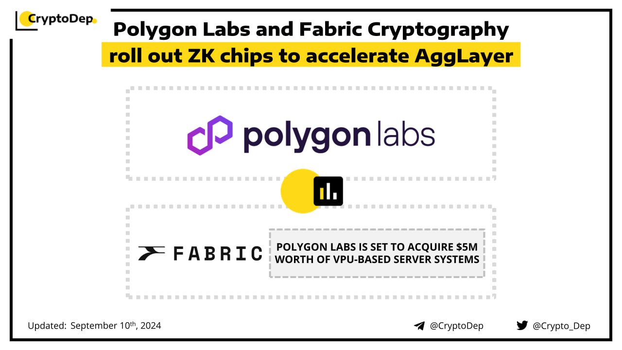 Polygon Labs teams up with crypto hardware manufacturer Fabric Cryptography to bring its Verifiable Processing Units to the AggLayer ecosystem. Moreover, Polygon has unveiled its plans to buy $5M worth of VPU-based server systems to accelerate ZK-proof generation for ZK-powered projects on the AggLayer. Earlier in August, Fabric raised $33M in Series A funding to develop its cryptography processing units to improve the speed and cost of running cryptographic workloads.