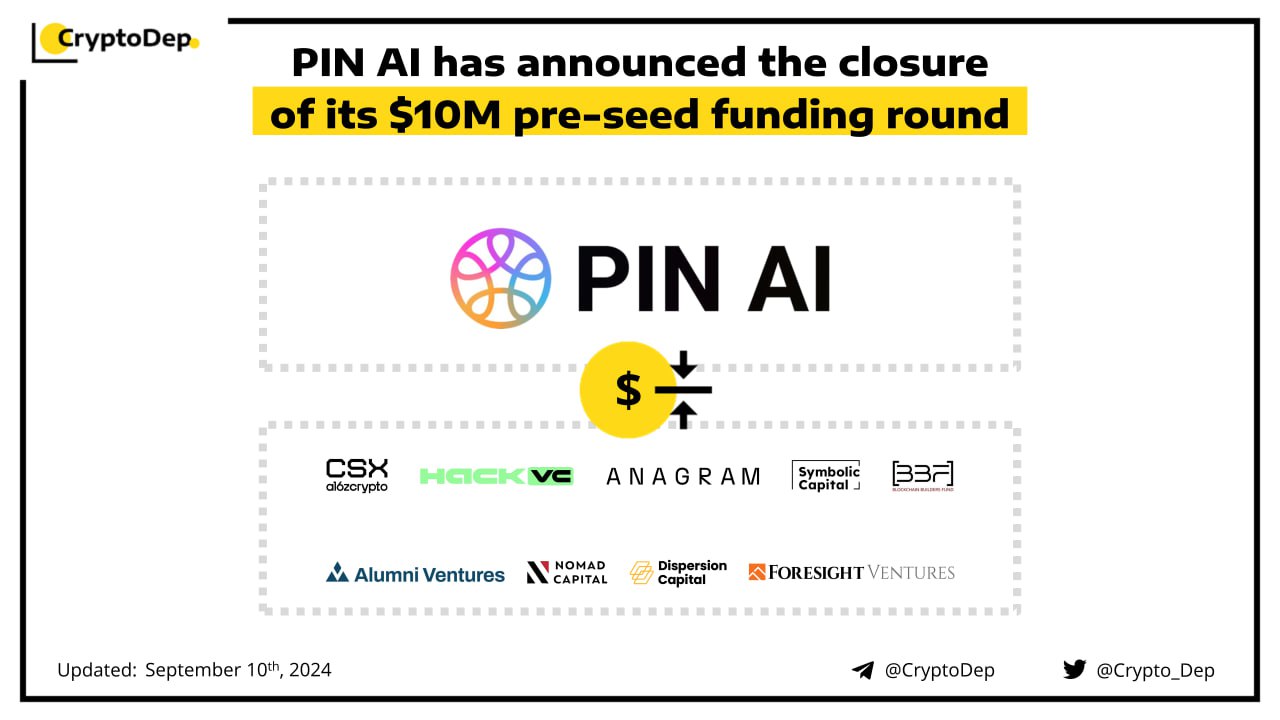 PIN AI, a developer of an open platform for personal AI, raises $10M in pre-seed funding from a16z crypto's CSX, Hack VC, Anagram, Blockchain Builders Fund, Symbolic Capital, Dispersion Capital, Alumni Ventures, Foresight Ventures, Nomad Capital, and numerous angels. PIN AI has been selected to join a16z's Crypto Startup Accelerator (CSX) Fall 2024 cohort.