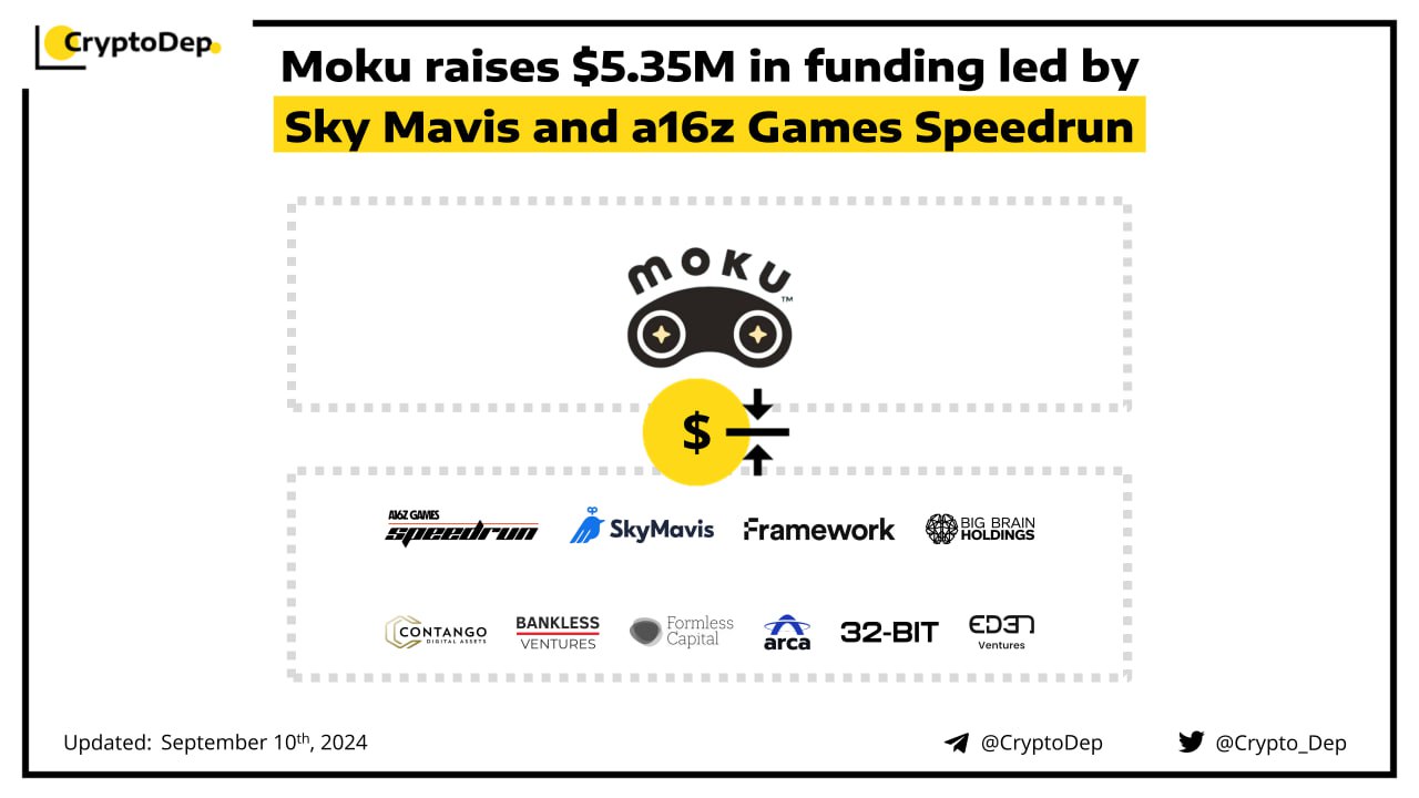Moku has closed its $5.35M investment led by Sky Mavis and a16z Games Speedrun. Additional round participants included Arca, Framework Ventures, 32-Bit Ventures, Big brain Holdings, Bankless Ventures, Formless Capital, Contango, and others. Moku is a Web3 gaming platform that connects players with game guilds, NFT casting pages, and game strategy communities.