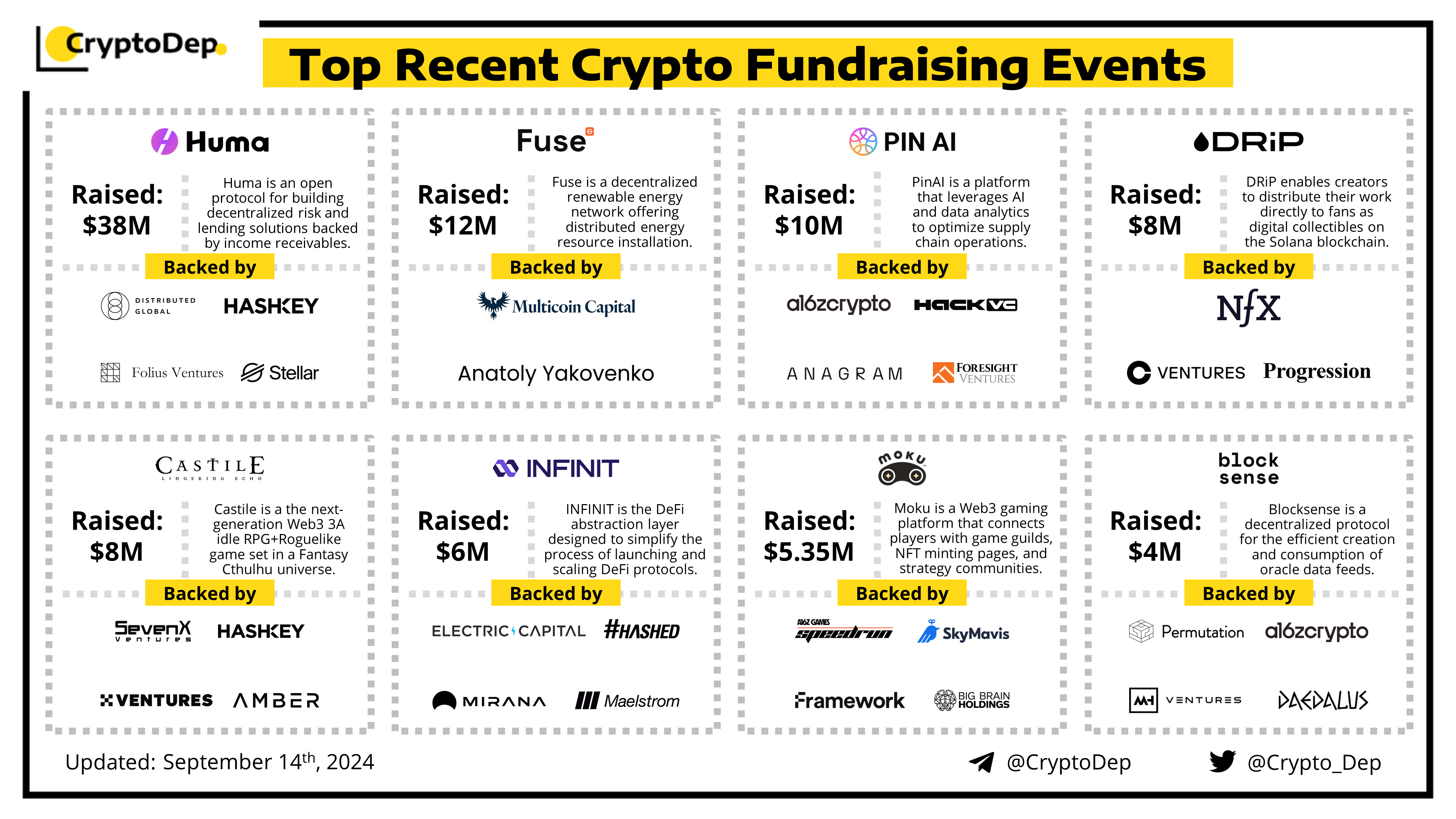 Presenting a list of some recent crypto fundraising events, backed by well-known investors such as a16z crypto (CSX), Hashed, Multicoin Capital, Hashkey, Electric Capital, Framework Ventures, Big Brain Holdings, OKX Ventures, Maelstrom, SevenX Ventures, Anatoly Yakovenko, and others. Let's take a look!