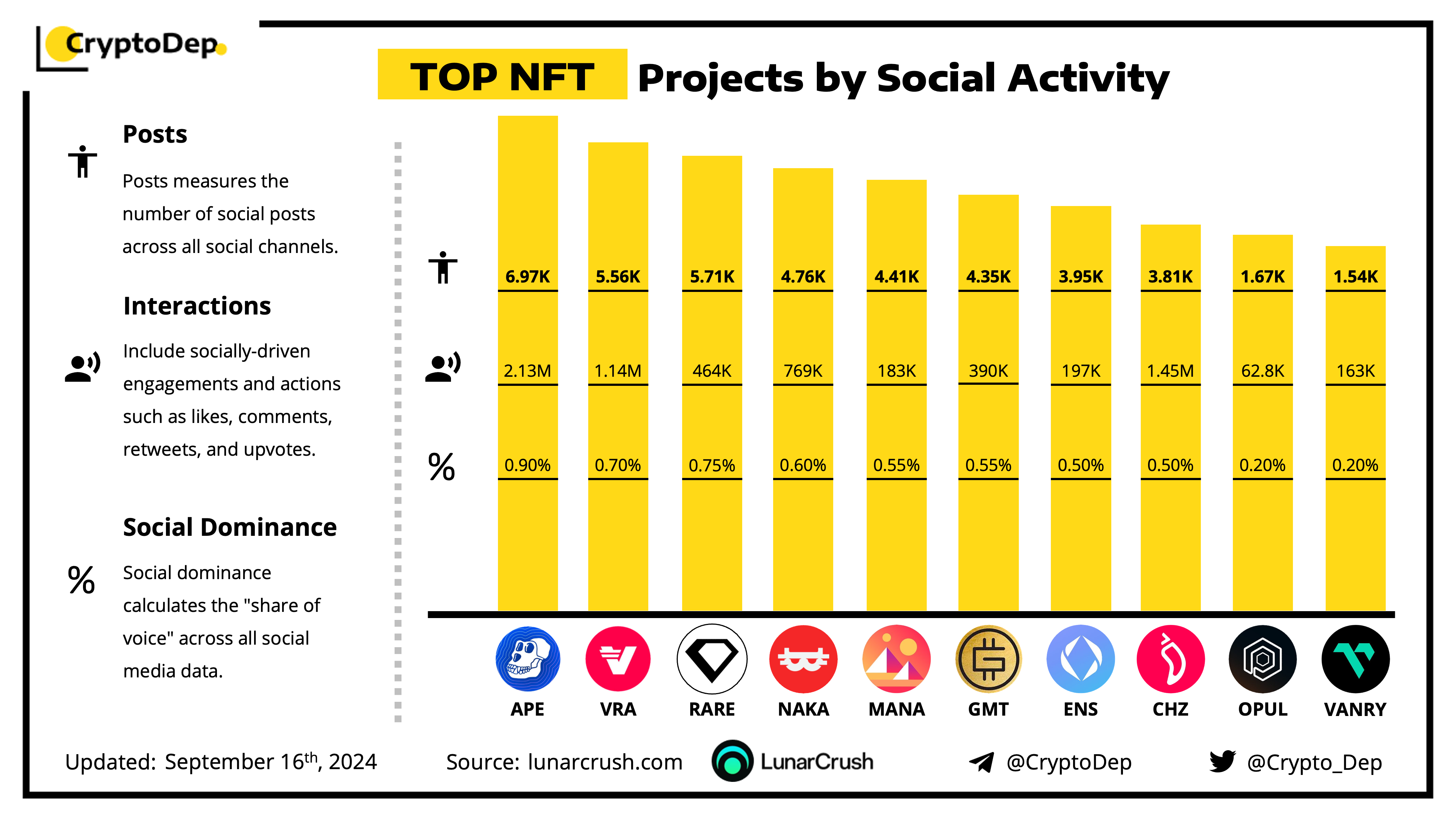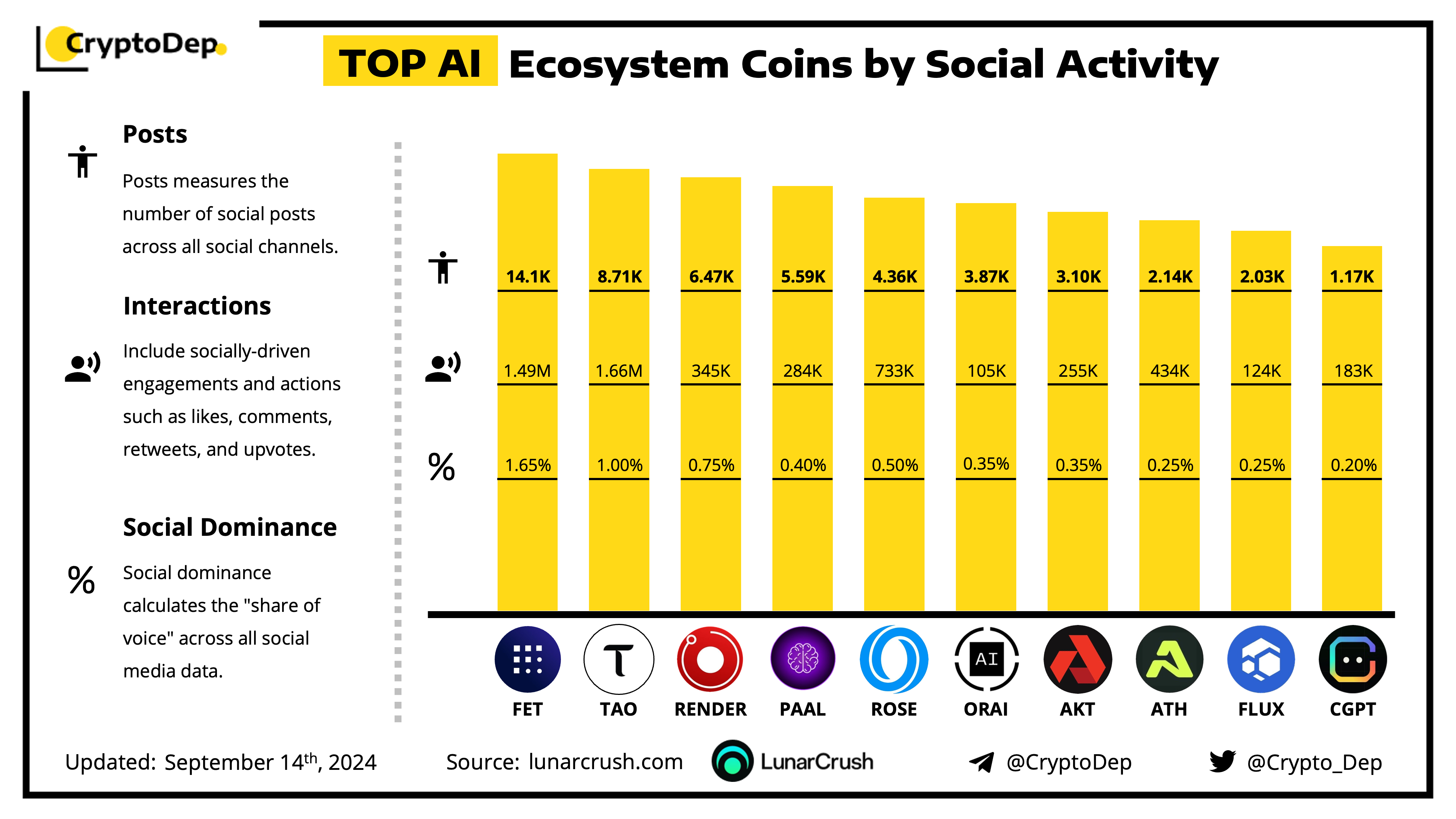 Interactions include socially-driven engagements and actions such as likes, comments, retweets, and upvotes.