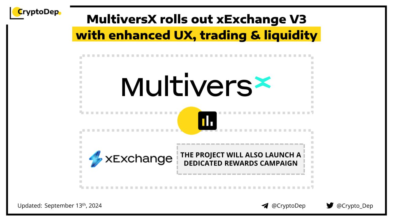 MultiversX has announced the launch of xExchange V3, improving platform's user experience, trading capabilities, and liquidity provision. The upgrade will effect multiple features, including price charts, shareable trade links, xExchange liquidity fund, boosted staking, dual farms, enhanced analytics, and more. Moreover, MultiversX has teased an upcoming rewards campaign to incentivize new users, top traders and liquidity bridgers.