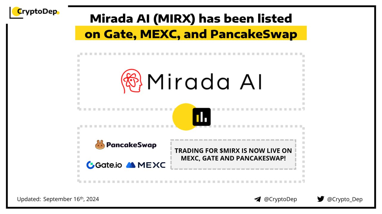 ββMirada AI (MIRX) has been listed on Gate, MEXC, and PancakeSwap