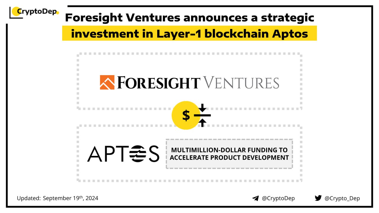 Foresight Ventures has announced a strategic investment in Aptos to accelerate the development of its Layer-1 blockchain infrastructure. The funding will be used to accelerate product development, enhance liquidity and support the advancement of Aptos. Moreover, the collaboration between Foresight Ventures and Aptos aims to expand the blockchain's presence in the Asia-Pacific region.