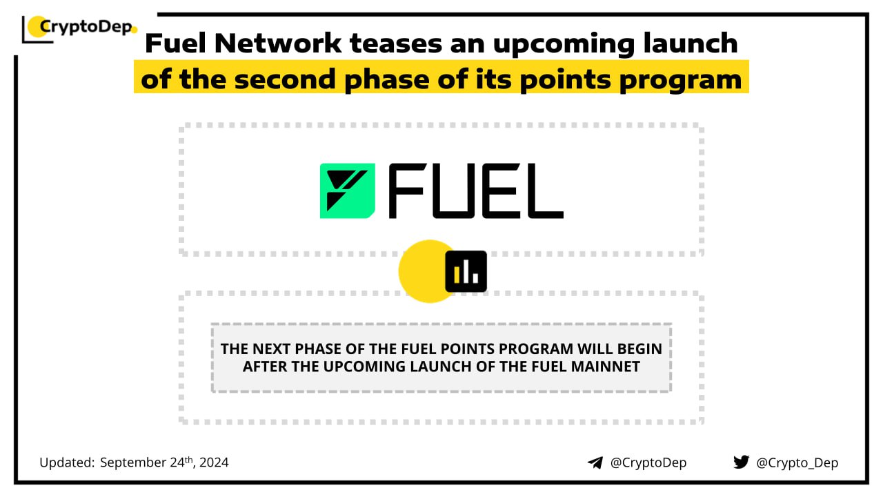 Fuel Network teases the launch of the Fuel points program Phase 2, which will begin after the upcoming launch of the Fuel Mainnet. At the mainnet launch, Phase 1 participants will be able to bridge their pre-deposited funds to mainnet to interact with Fuel's expanding ecosystem of applications and continue accumulating points in multiple new ways. Fuel is an operating system purpose-built for Ethereum rollups, backed by Blockchain Capital, Stratos, CoinFund, Spartan, Fenbushi Capital, and others.