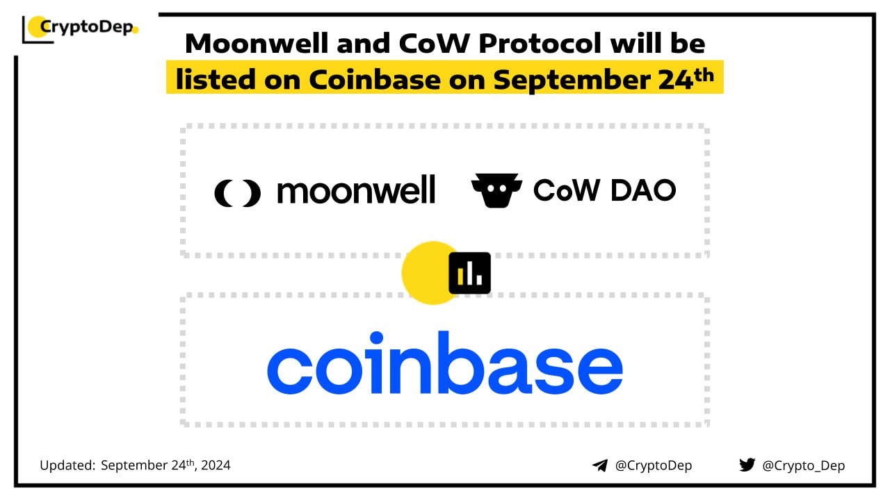ββMoonwell and CoW Protocol will be listed on Coinbase on September 24th