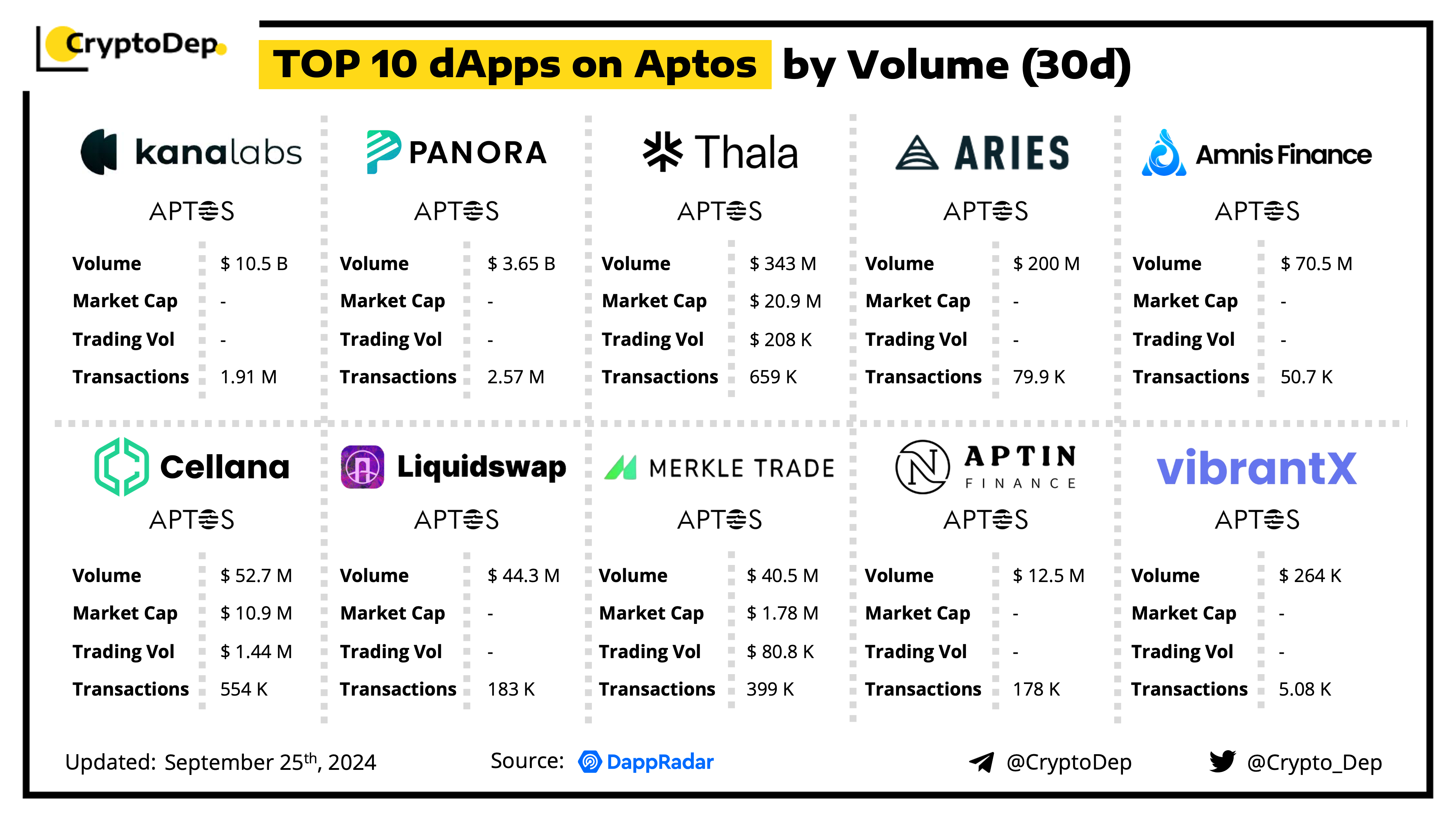 ββTOP 10 dApps on Aptos by Volume (30d)