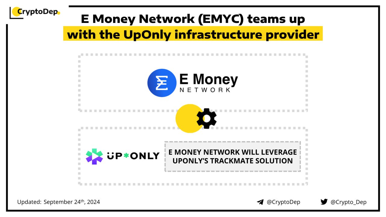 E Money Network has announced a partnership with UpOnly, a leading Web3 infrastructure provider in Gaming & RWA. Under this partnership, E Money Wallet will be integrated into the UpOnly ecosystem to provide seamless access to fiat and crypto assets for their users. Moreover, E Money Network will leverage Trackmate, an innovative solution offered by UpOnly. E Money Network is a pioneering modular RWA Chain with compliance blocks.