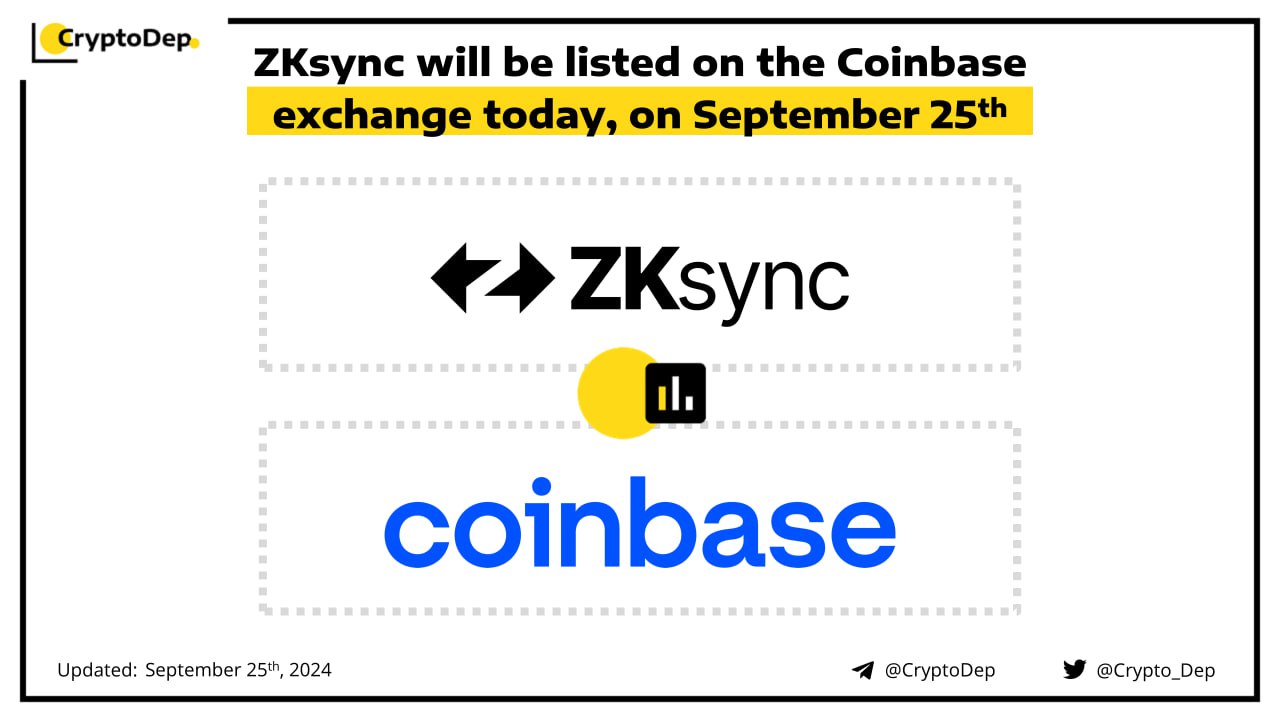 ββZKsync will be listed on the Coinbase exchange today, on September 25th