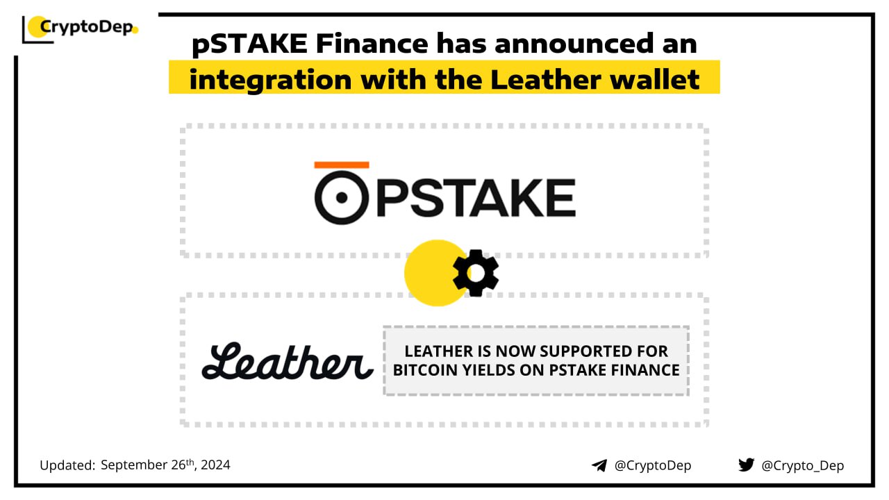 pSTAKE Finance joins forces with Leather, a wallet for Bitcoinβs multilayered economy of Ordinals, Stacks NFTs, and more. Through this integration, Leather will be supported for Bitcoin Yields on pSTAKE, allowing users to stake $BTC on Babylon. pSTAKE Finance is a multichain liquid staking protocol backed by Binance Labs.