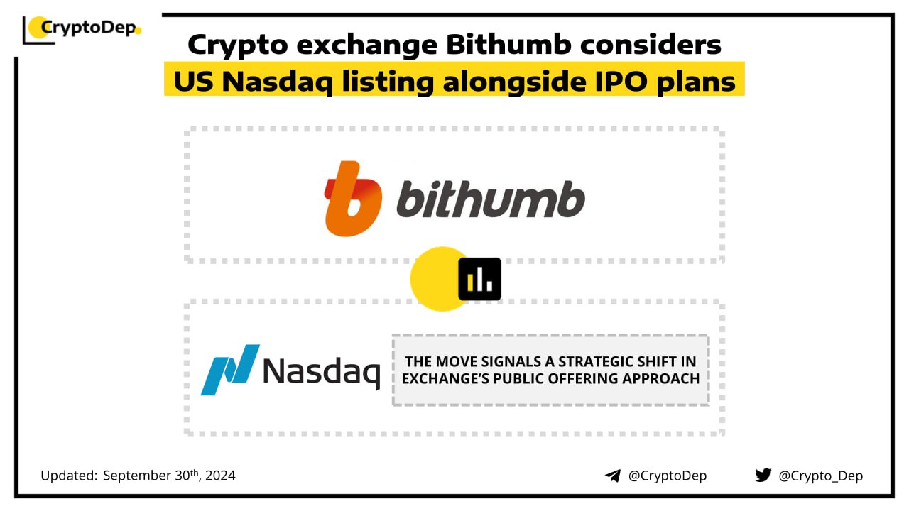 ππ» coindesk.com/business/2024/09/30/crypto-exchange-bithumb-weighs-us-nasdaq-listing-report