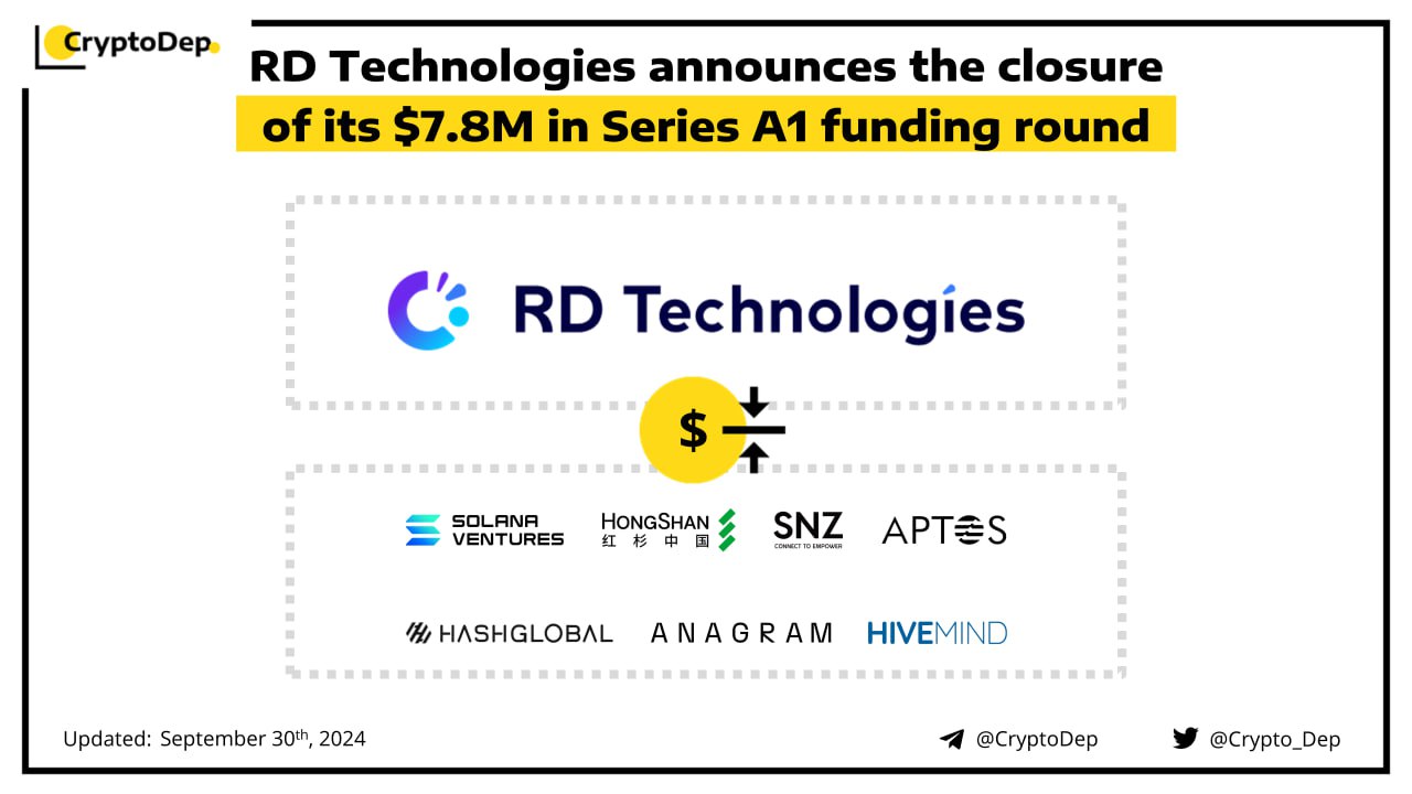 RD Technologies has secured a $7.8M strategic investment from HongShan, Hivemind Capital, Aptos Labs, Hash Global, SNZ Capital, Solana Foundation, Anagram, and Upward Capital. The fresh funding will enable RD Technologies to continue building a financial platform that bridges the Web2 and Web3 worlds and continue to contribute to the development of the Web3 ecosystem in Hong Kong. RD Technologies Group is the financial platform that bridges the Web2 and Web3 worlds.