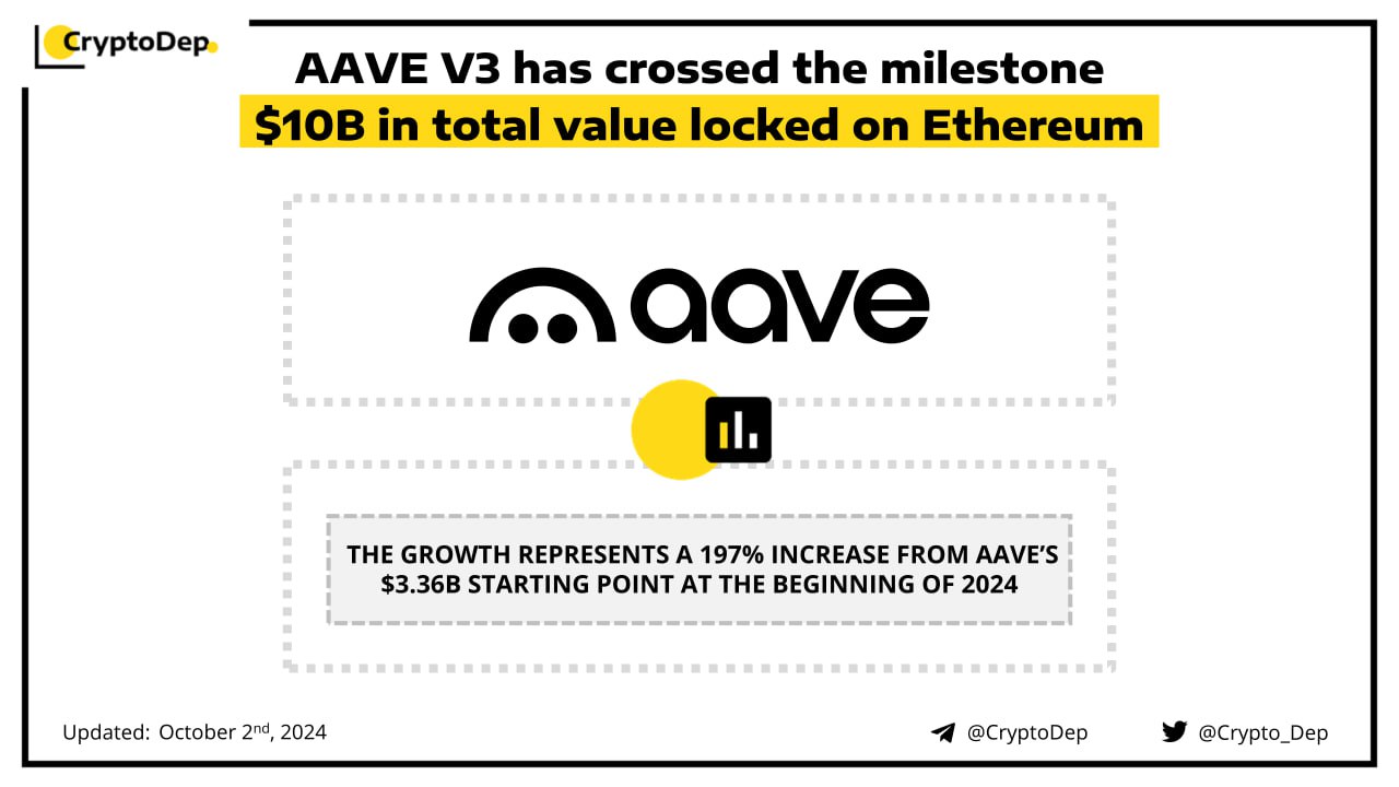 AAVE V3 has crossed the milestone $10B in total value locked on Ethereum