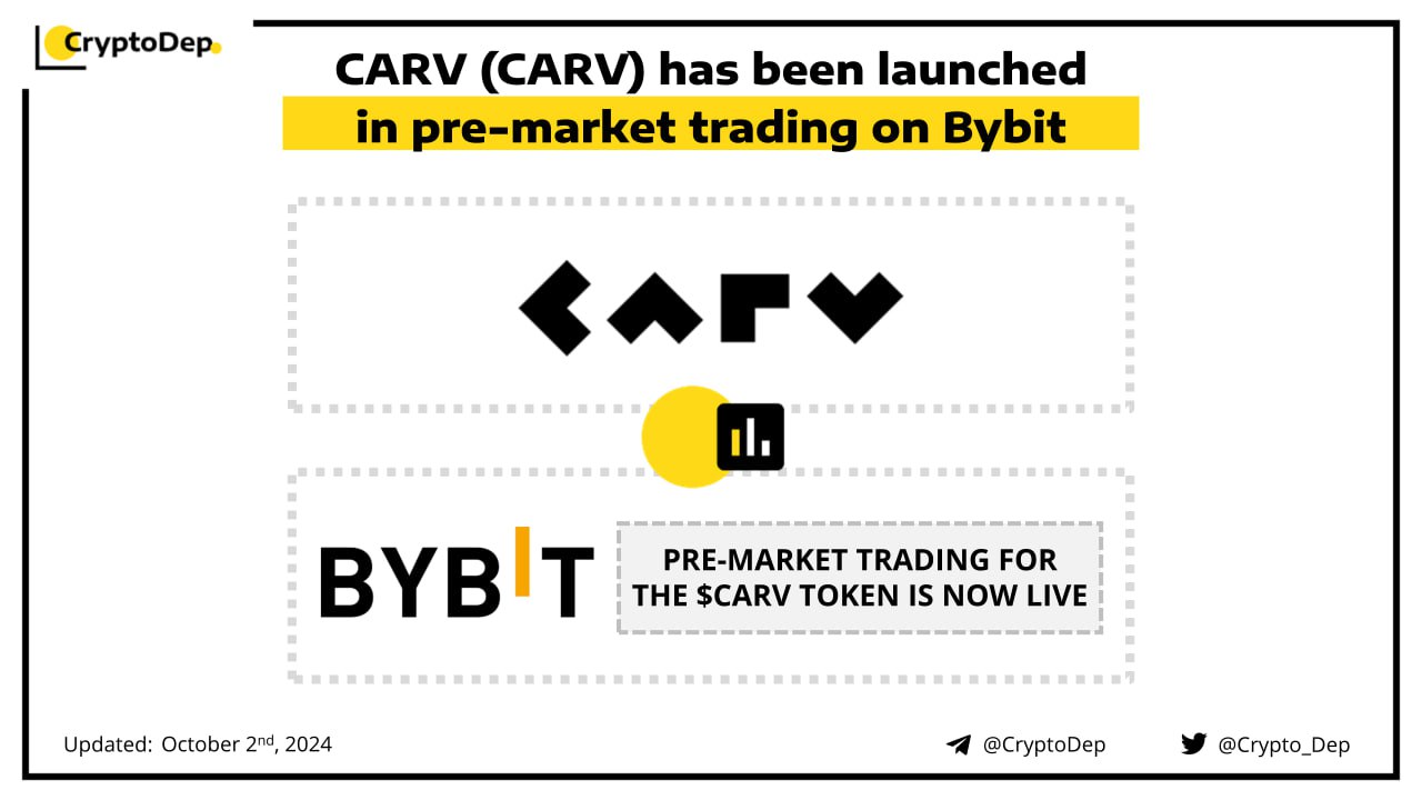 Pre-market trading for the $CARV token is now live on the Bybit exchange! Earlier this week, CARV unveiled its upcoming airdrop with 40M $CARV in rewards. Backed by Animoca Brands, OKX Ventures, IOSG, and others, CARV is a modular data layer that facilitates data exchange and value distribution across gaming and AI.