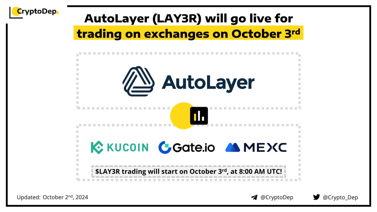 AutoLayer (LAY3R) will go live for trading on exchanges on October 3rd