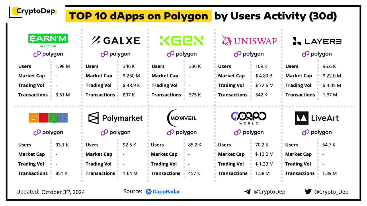Top 10 dApps on Polygon by Users Activity (30d)