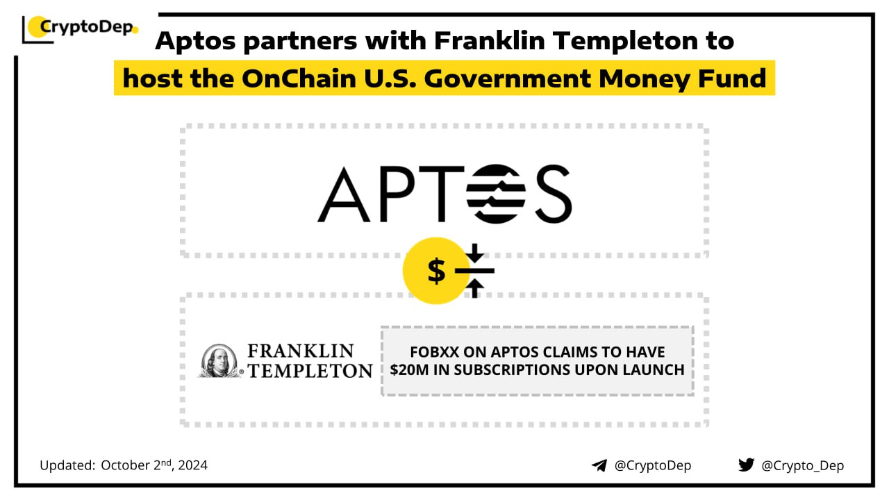 Aptos has became the fifth blockchain to host Franklin Templeton's OnChain U.S. Government Money Fund (FOBXX). The collaboration aims to increase the interoperability of real-world and treasury-backed assets across non-EVM blockchain environments. FOBXX on Aptos claims to have already received more than $20M in subscriptions upon launch. Initially launched on the Stellar blockchain, the fund subsequently expanded to Polygon, Arbitrum, and Avalanche.