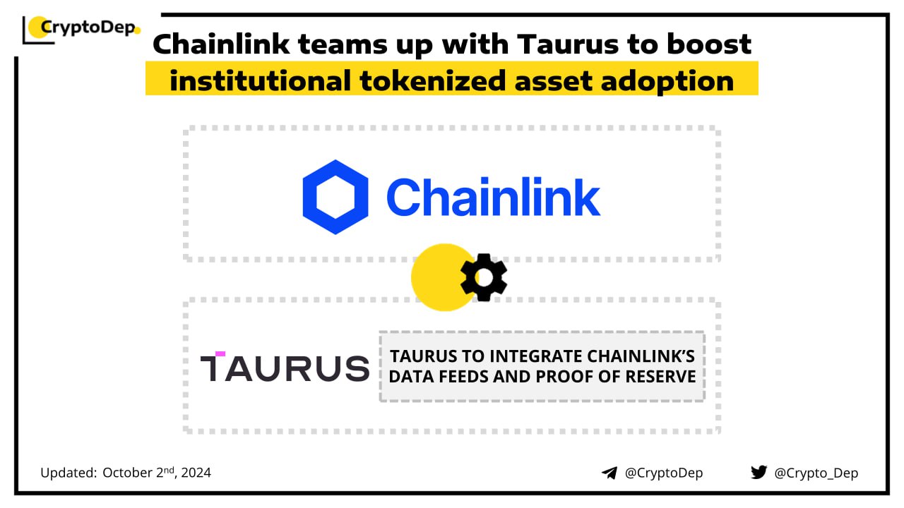 Chainlink has announced a strategic partnership with Taurus, a full-stack digital asset infrastructure platform covering issuance, custody, and trading. Through this integration, Taurus will integrate Chainlink Data Feeds for market pricing, reference data, & identity data, and Chainlink Proof of Reserve to help protect users from over-issuance risks and increase reserve transparency.