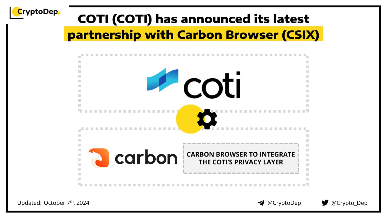 ββCOTI (COTI) has announced its latest partnership with Carbon Browser (CSIX)