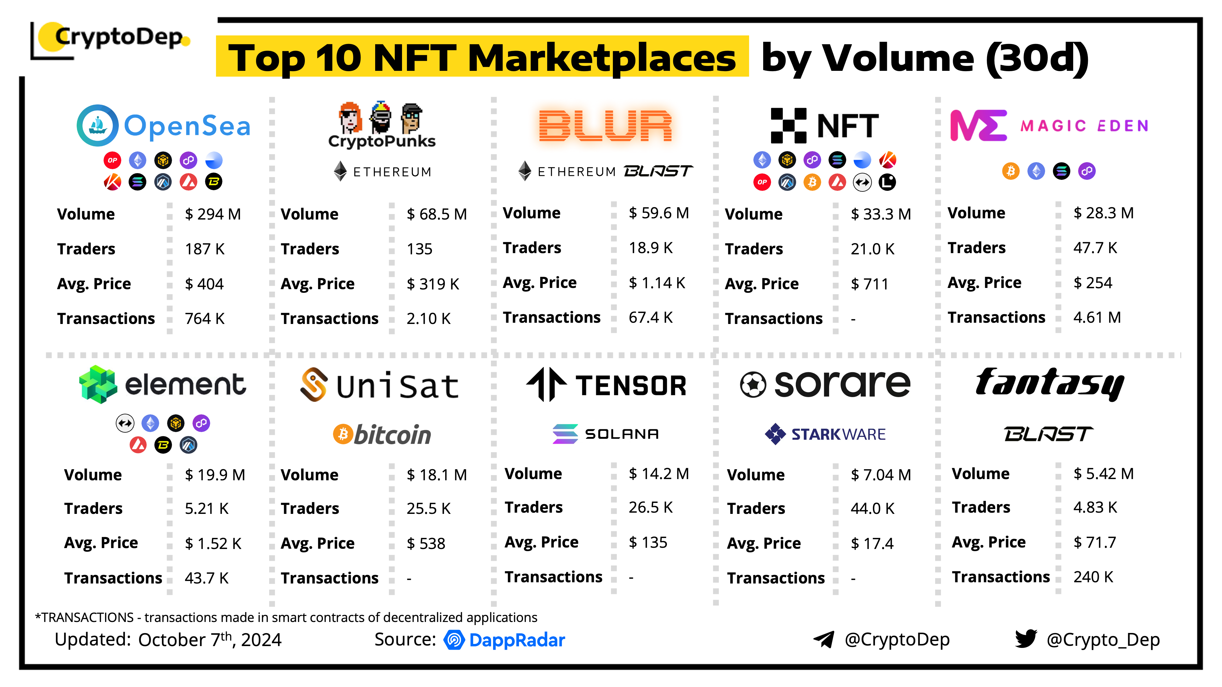 An NFT marketplace is a digital platform for buying and selling NFTs. Let's take a look at some of the best-performed NFT marketplaces by volume in the last 30 days, according to the data from DappRadar.