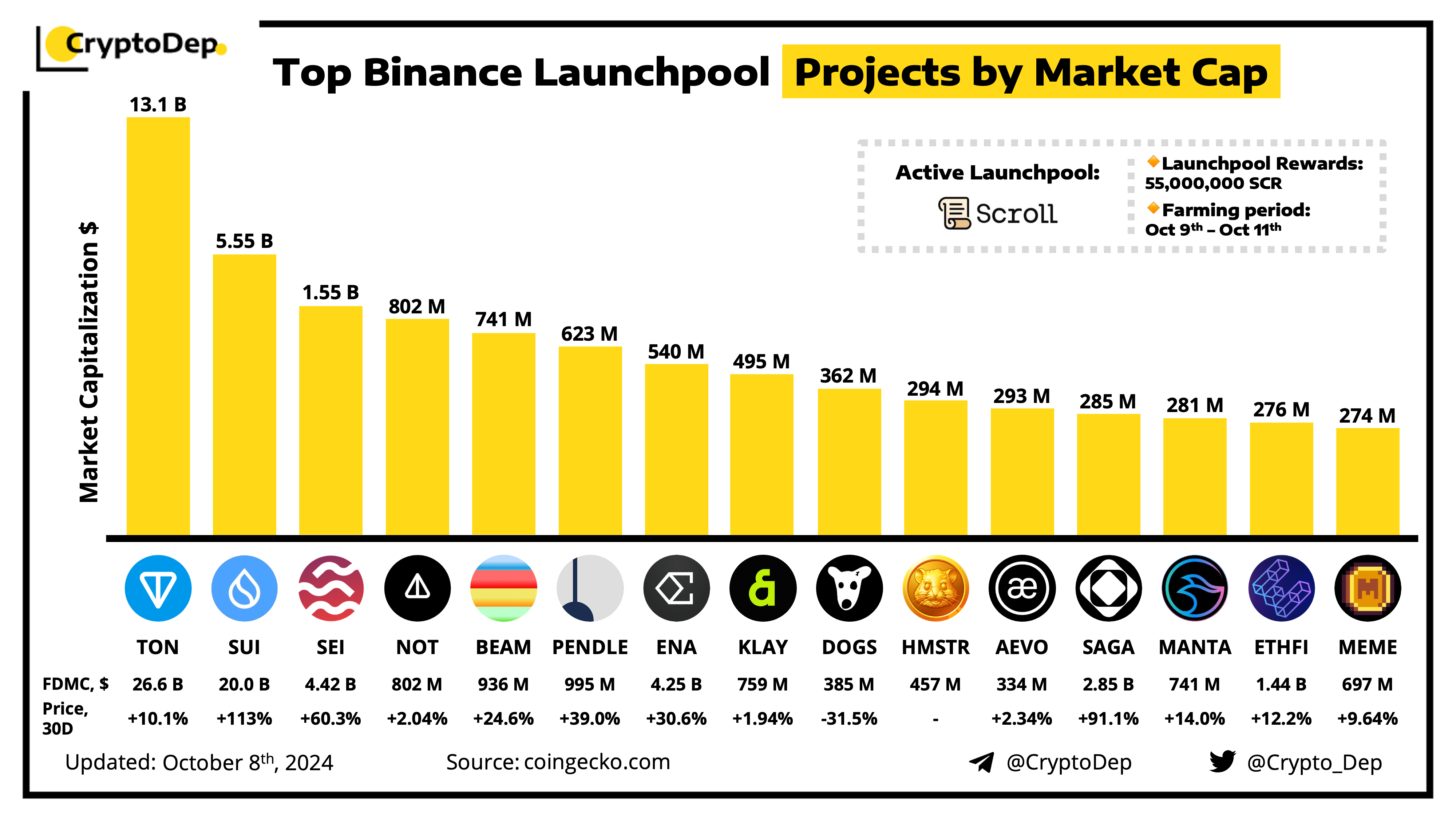 As it was announced, Scroll $SCR became the 60th project on the Binance Launchpool. Let's analyze the current state of top projects that have been launched via the Binance Launchpool.