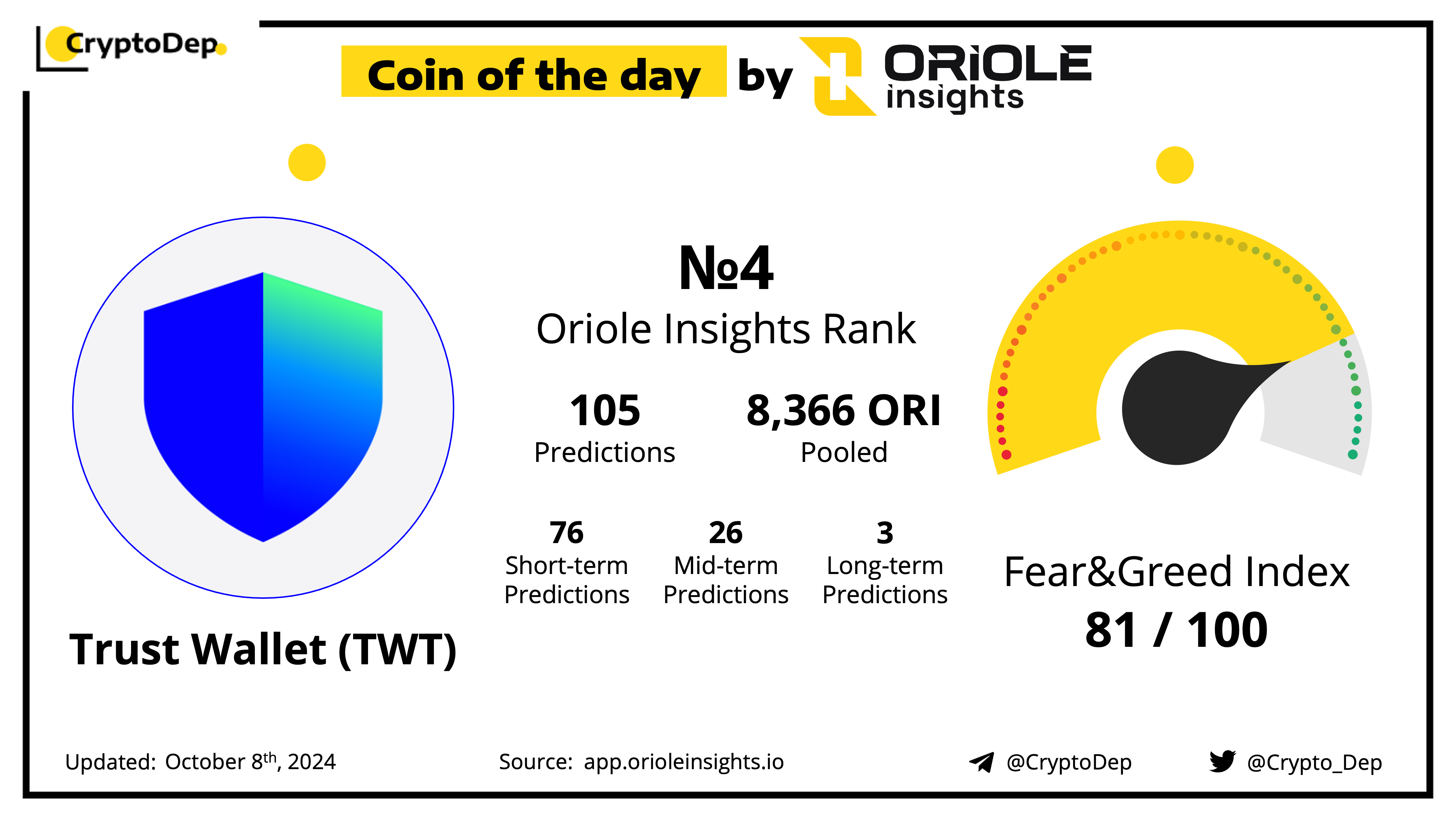 Predict TWT price movements on Oriole Insights