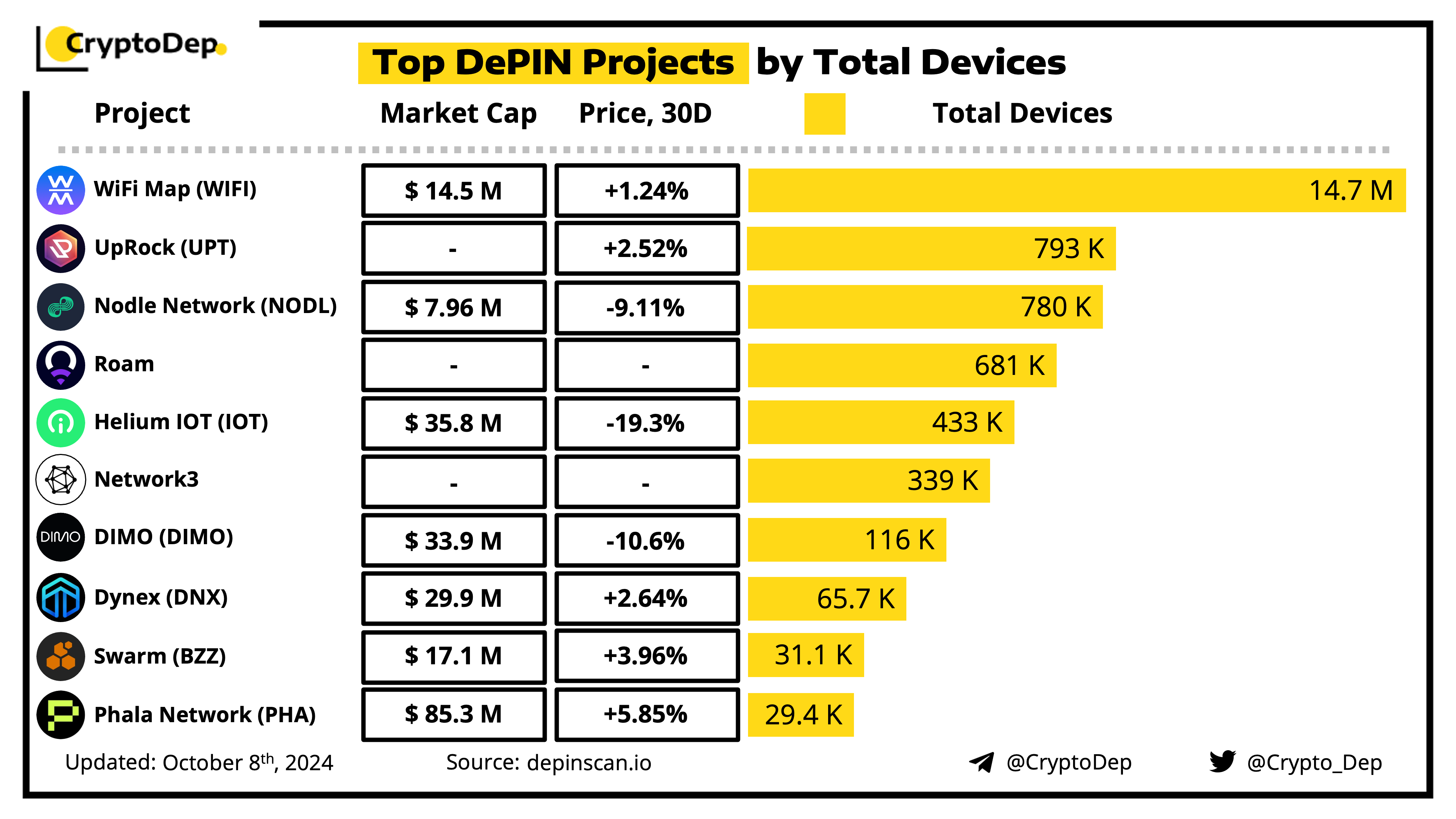 ββTop DePIN Projects by Total Devices