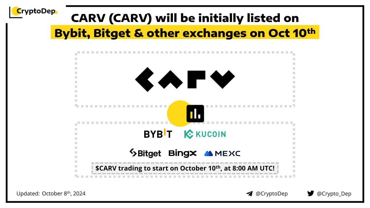 ββCARV (CARV) will be initially listed on Bybit, Bitget & other exchanges on October 10th