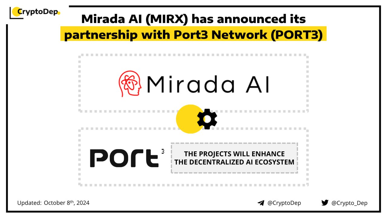 ββMirada AI (MIRX) has announced its partnership with Port3 Network (PORT3)