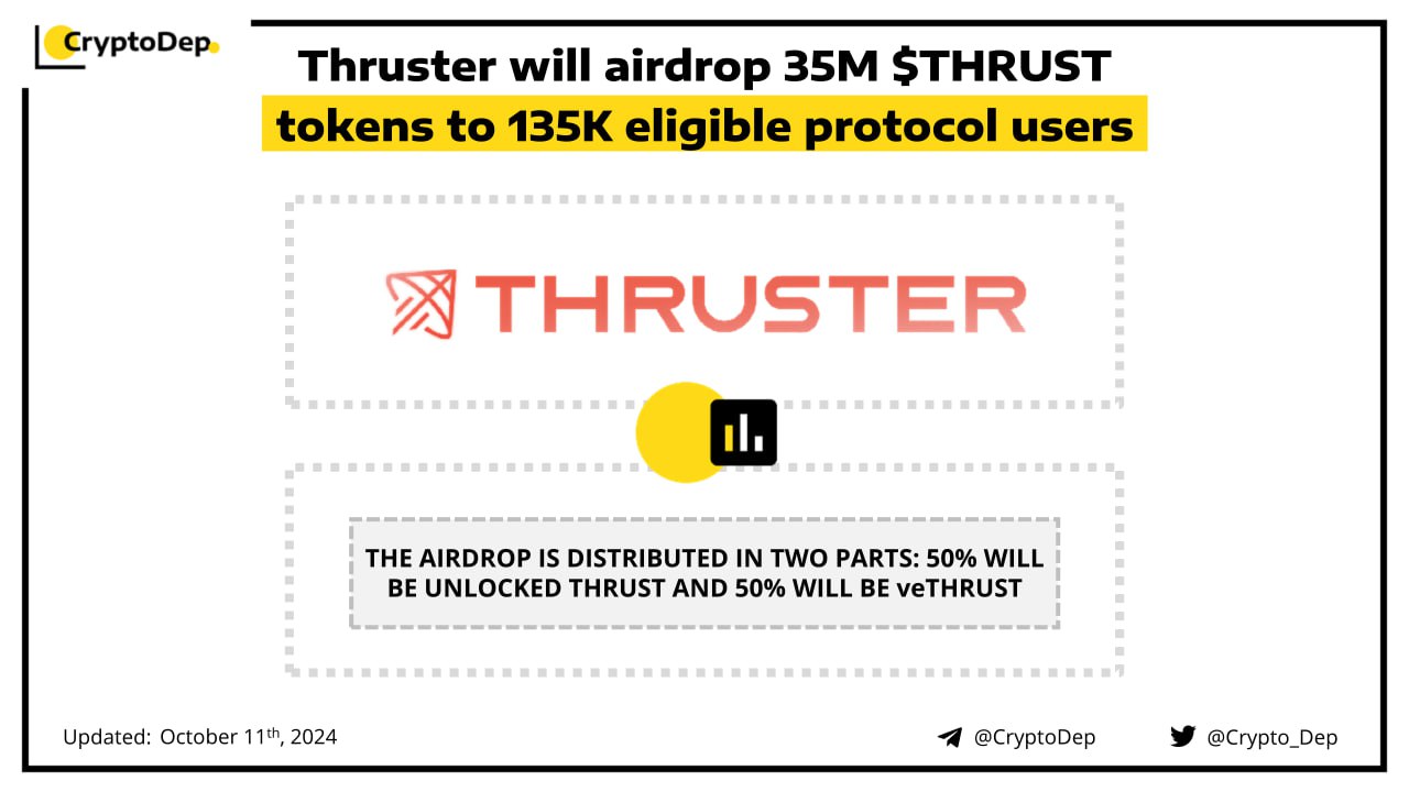 ββThruster will airdrop 35M $THRUST tokens to 135K eligible users